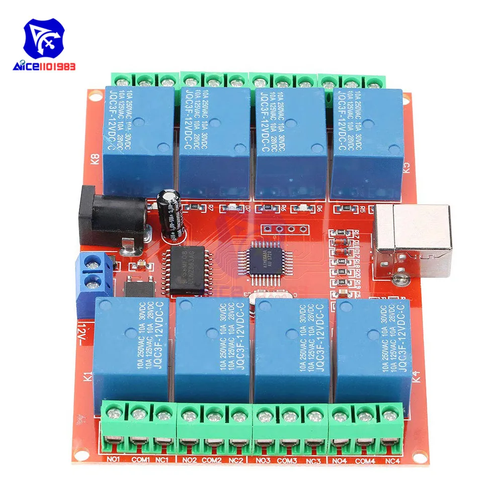 Experience seamless control with this high-quality 8 Channel Relay Board. Designed for smart home and automation projects, it features vibrant red PCB with contrasting green terminal blocks and bright blue relays. The black integrated circuit and surface-mounted components give a sleek, modern appearance, complemented by industrial metallic USB port accents. Its organized labels and markings ensure a professional feel, providing both aesthetic appeal and functionality. The square onboard USB interface guarantees connection stability, while the high-performance USB controller chip ensures reliable data transfer. Equipped with genuine Songle relays and a durable, military-grade PCB, this module offers robust operation across temperatures from -40°C to 85°C. Compact and thoughtfully designed, it makes automation straightforward and dependable, enhancing your project’s efficiency and reliability.