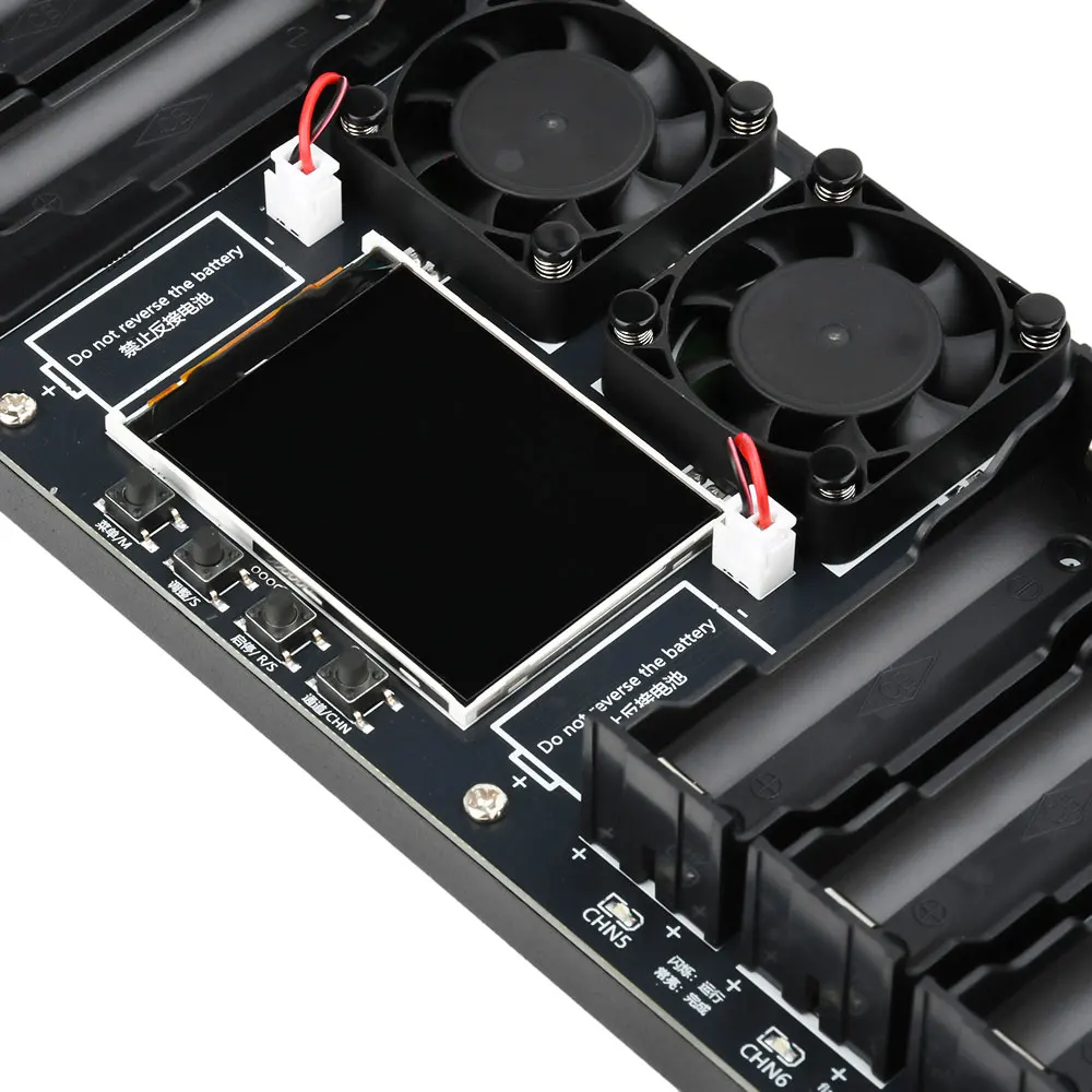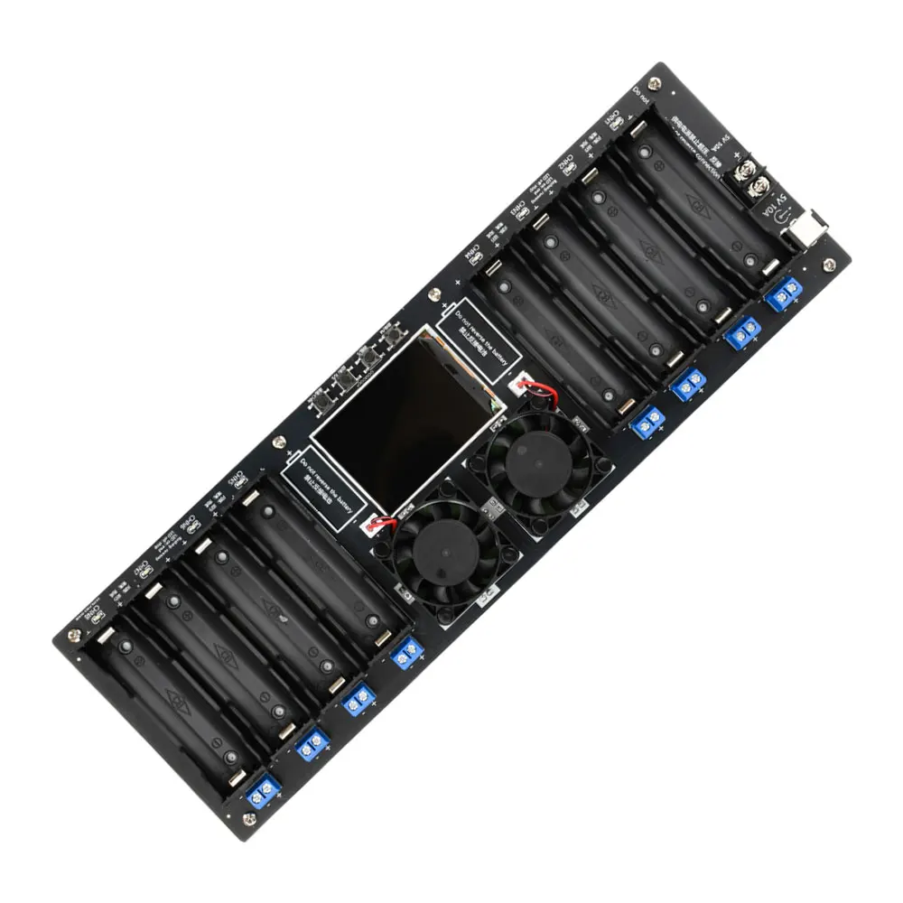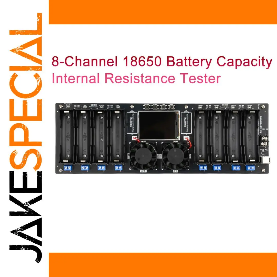 Experience the precision and reliability of this this 8-channel battery capacity and internal resistance tester, designed to give you comprehensive insights into your battery performance. Featuring a sleek black and industrial aesthetic, its rectangular shape combines a smooth, reflective surface with accessible rounded battery slots. The prominent 2.4-inch color screen provides real-time voltage, current, and curve displays, enhancing your monitoring experience. Dual cooling fans ensure optimal heat dissipation during extended testing sessions. With independent operation for each channel and synchronization capabilities, this device allows flexible, accurate testing of multiple batteries simultaneously. Whether you're managing lithium-ion cells or performing detailed capacity assessments, this tester provides the high-tech tools you need for professional results.