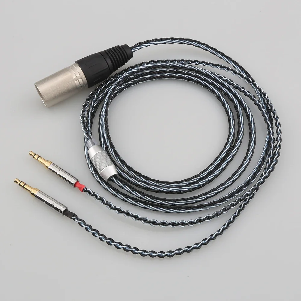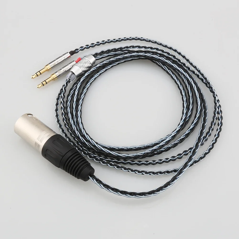 Experience exceptional audio clarity with this high-quality 8-core silver-plated OCC headphone cable. Designed for audiophiles and professionals, it offers superior conductivity and durability. The braided silver and black strands not only enhance strength but also provide an elegant aesthetic. Its lightweight and flexible construction ensures comfort and ease of use during extended listening sessions. Equipped with multiple interchangeable connectors, including 3.5mm 3-pole, 4-pole balanced, 2.5mm balanced, 4.4mm balanced, XLR 4-pole, dual XLR 3-pole, and 6.5mm, this versatile cable fits a wide range of high-fidelity headphones and audio equipment. The ergonomic earhook accentuates comfort, while the braid shield provides excellent noise isolation. Whether you're in studio or casual use, this cable guarantees premium sound performance and enhanced durability.