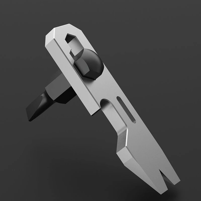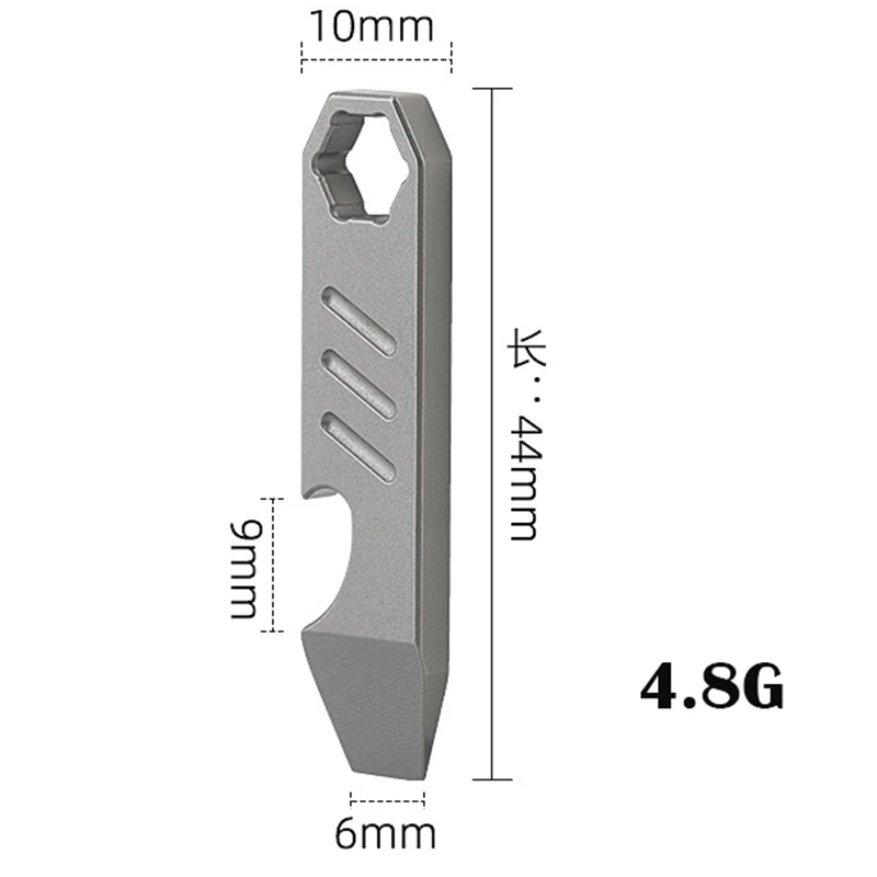 Experience the ultimate in portable utility with this sleek, multifunctional titanium alloy outdoor tool. Measuring 45mm in length, 11mm in width, and 3.5mm in thickness, and weighing just 5 grams, it combines an engraved measurement scale, hexagon and batch head wrenches compatible with 6.35mm sleeves (sold separately), a bottle opener, pry bar/disassembly tool, screwdriver for flat and cross heads, and a fluorescent tube clamp slot measuring 1.5mm by 6mm. Crafted from durable titanium alloy, its minimalist yet industrial design offers high strength, lightweight practicality, and versatile functionality—perfect for camping, outdoor adventures, and emergency preparedness.