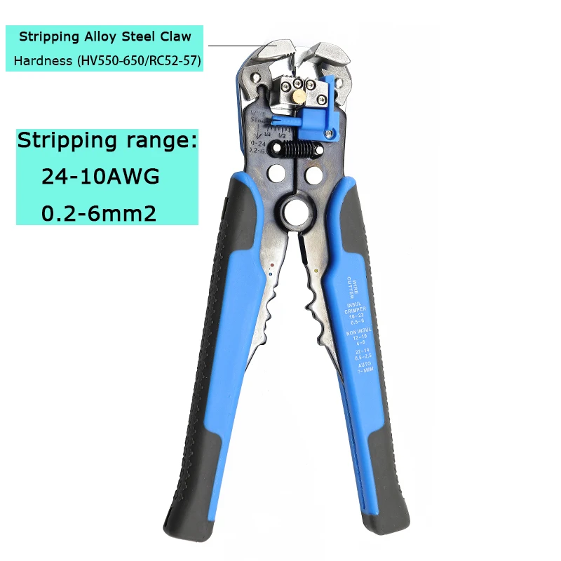 - Supports a stripping range of 24-10 AWG (0.2-6mm²) and a cutting range of 10-24 AWG (0.2-6mm²), covering most standard electrical and electronic wiring needs.