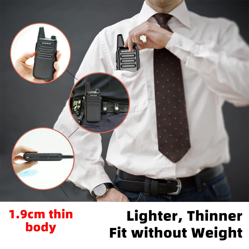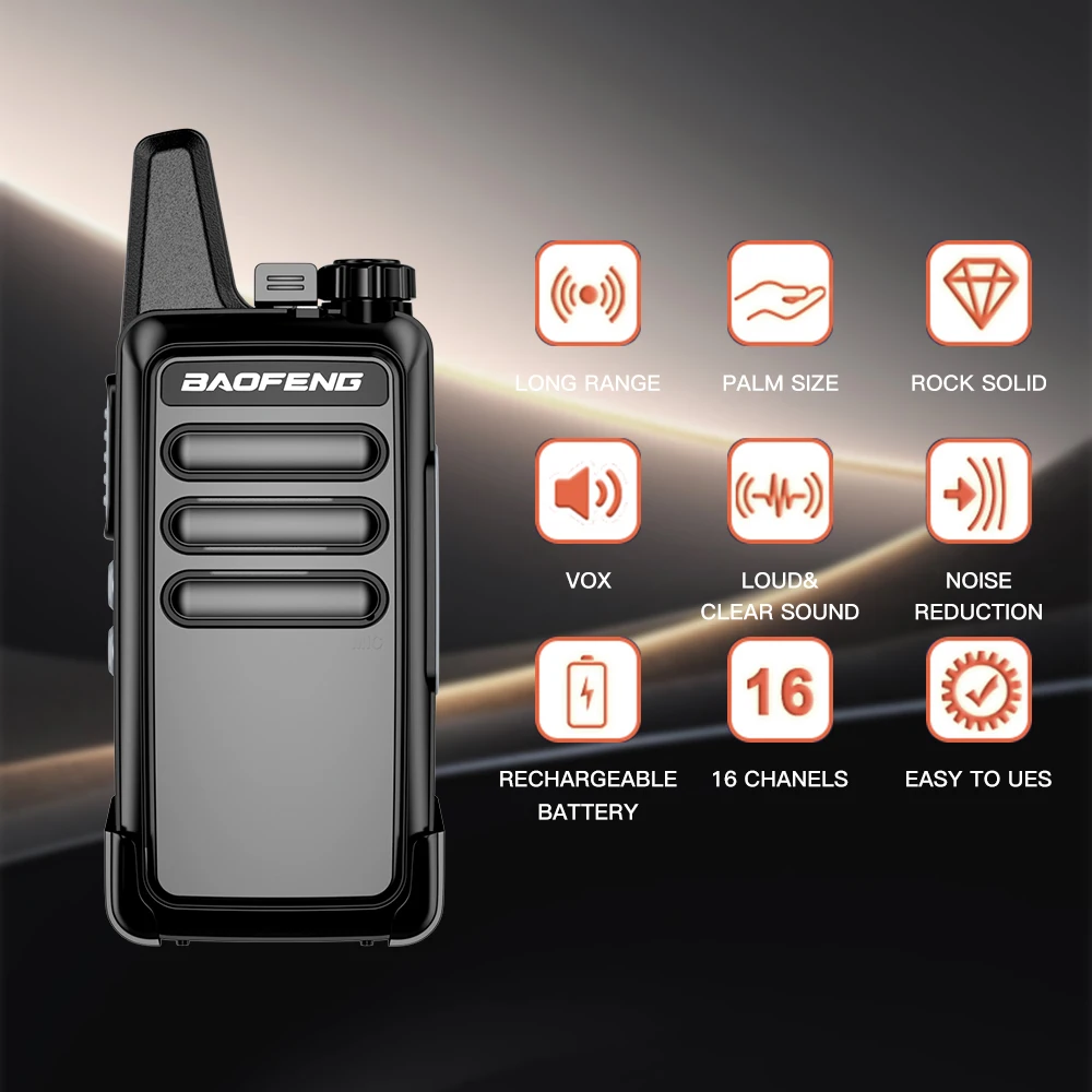 - Certified with CE and FCC standards, featuring a VOX function for hands-free operation, perfect for outdoor activities, security, hospitality, and events.