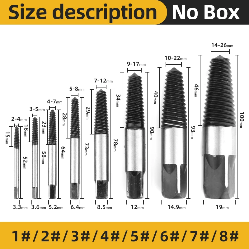 - Includes sizes 1# to 8# (excluding 6#), perfect for removing a wide range of broken screws and bolts of different sizes.