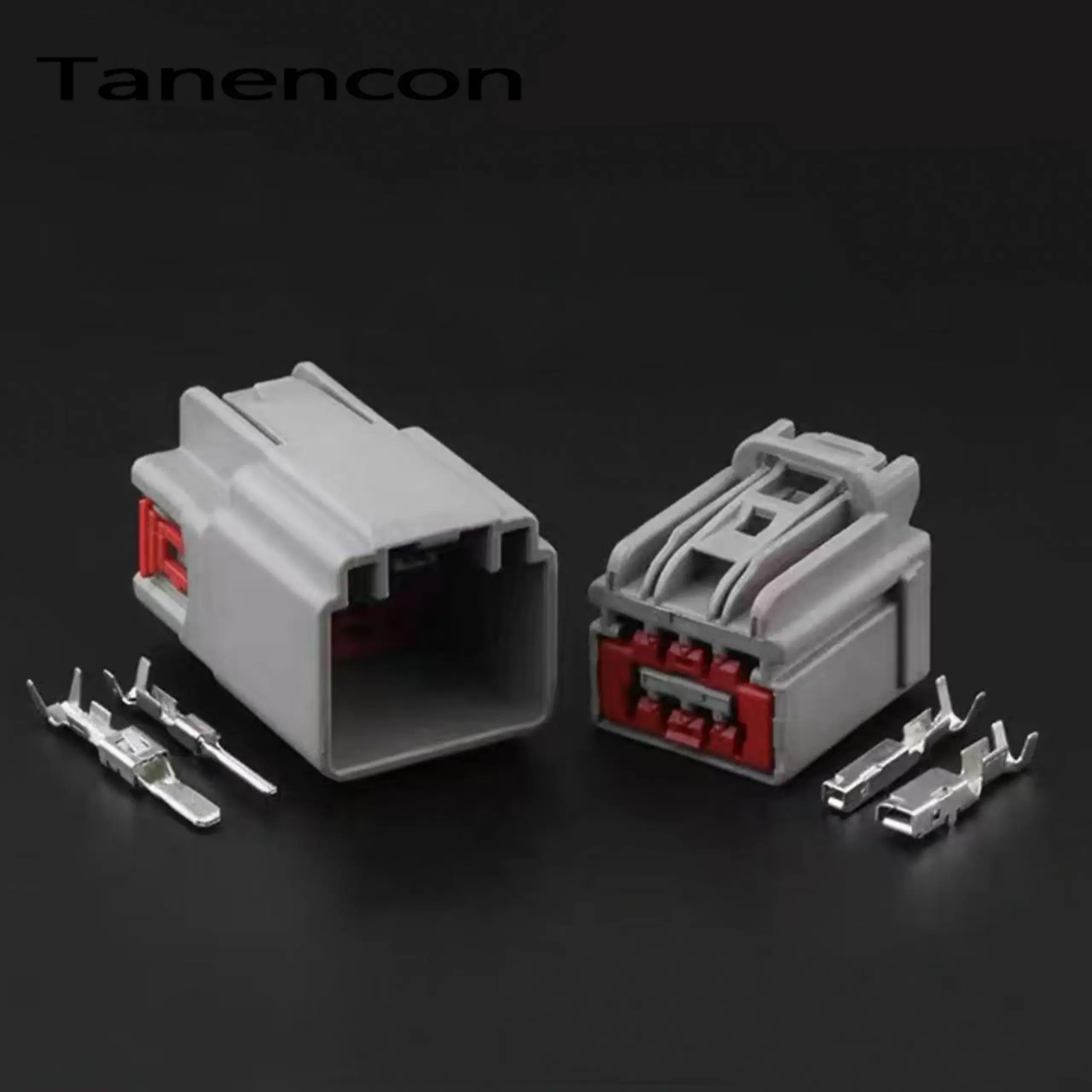 Experience reliability and efficiency with this 8-pin composite type electrical cable connector set, ideal for various electrical applications. The set includes both male and female connectors, designed with a predominantly gray rectangular body that features smooth edges and a slightly contoured top. The front boasts a vibrant red section highlighting four neatly arranged terminals, ensuring a secure and precise fit. You can choose from configurations of 1 set, 5 sets, or 20 sets, tailoring your purchases to meet your specific needs. Additionally, the connectors are complemented by waterproof plugs, enhancing their durability and usability for home or industrial use.