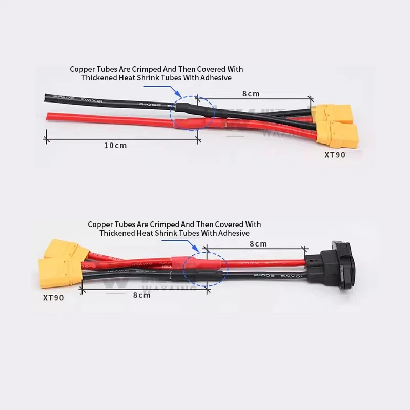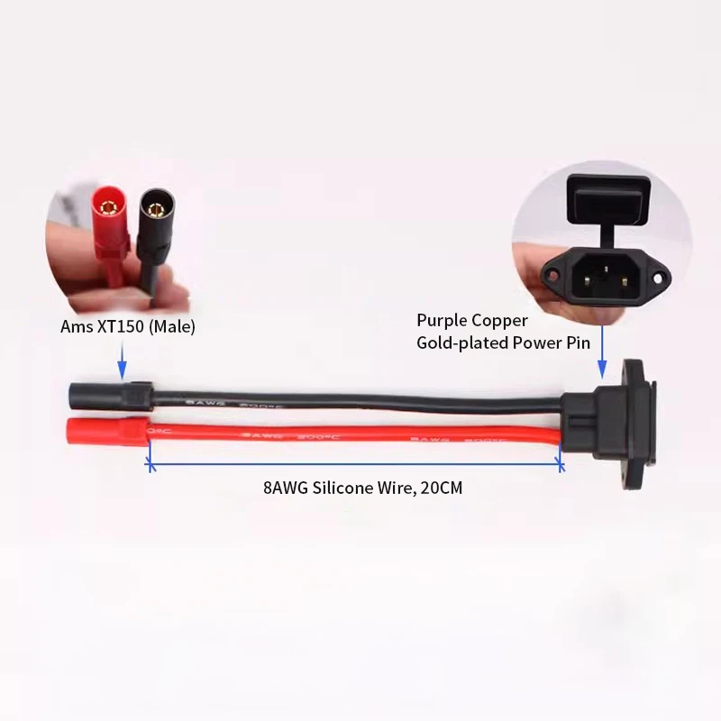 - Compatible with multiple electrical setups including 3-pin to XT150 male, dual XT150 connections, and supports continuous current of 80A.