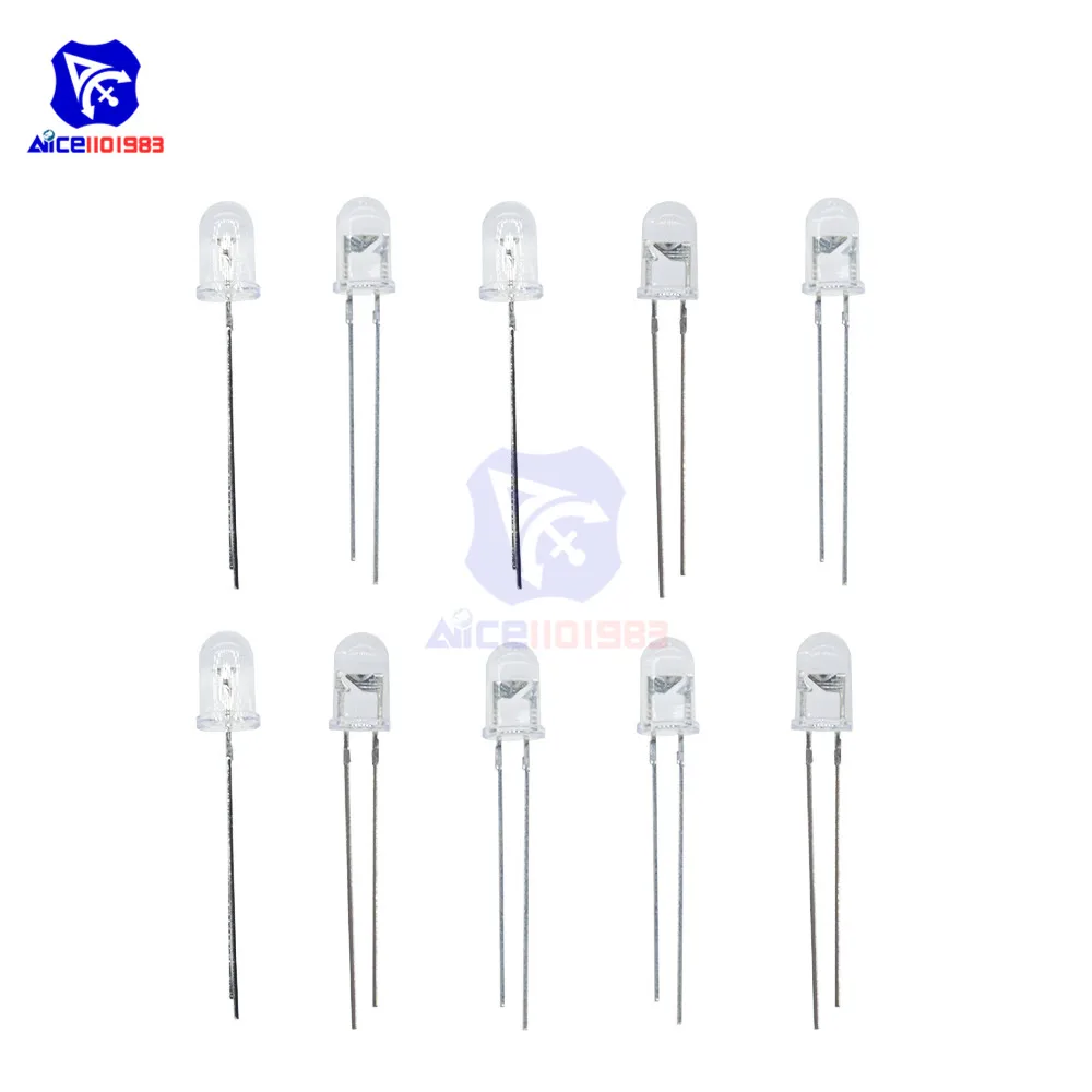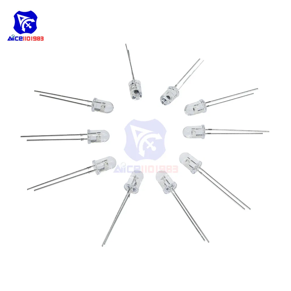 Experience high-quality infrared illumination with this set of 10 surface-mount IR LED lamps, each measuring 5mm with a wavelength of 850nm, ideal for night vision cameras. These LEDs operate at a voltage of ≤1.5V and a current of 20-30mA, with a maximum forward voltage of 1.5V and maximum forward current of 30mA. Their transparent lenses ensure focused light emission, while the compact, surface-mount design provides easy integration into various devices. Suitable for enhancing night vision performance, these efficient, durable IR LEDs deliver reliable infrared illumination for your camera systems, making them an essential component for night surveillance or low-light applications.