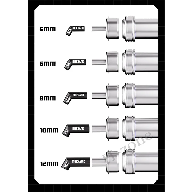- Variety of sizes from 5mm to 12mm, clearly labeled on each nozzle for easy identification and rapid switching between tasks.