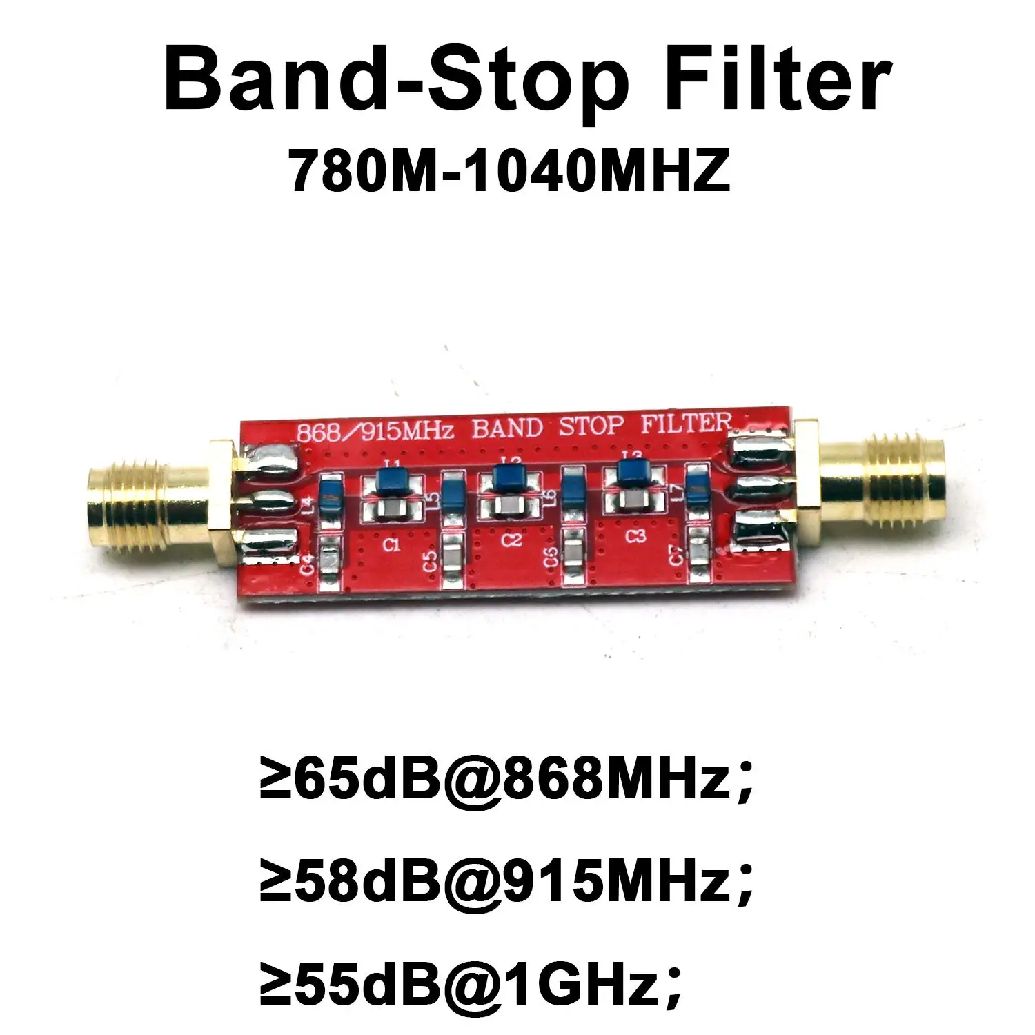 - Operates within 780-1040MHz, centered at approximately 840MHz, for targeted interference suppression in RF communication systems.