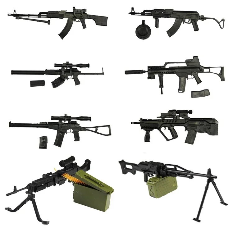Elevate your action figure collection with the GRAPMAN 8-piece set of 1/6 scale weapons, crafted from durable ABS plastic. This meticulously designed set features iconic firearms: RPK-74, AK47, 9A-91, AS Val, M240, KSK G36, TAR-21, and PKP, bringing the excitement of movies and TV to your display. Each piece highlights intricate details for stunning realism, perfect for model enthusiasts. With dimensions crafted for precise fit, these models require assembly, ensuring an engaging experience. Choose between options with or without the original box to suit your display needs. Embrace action and adventure today!