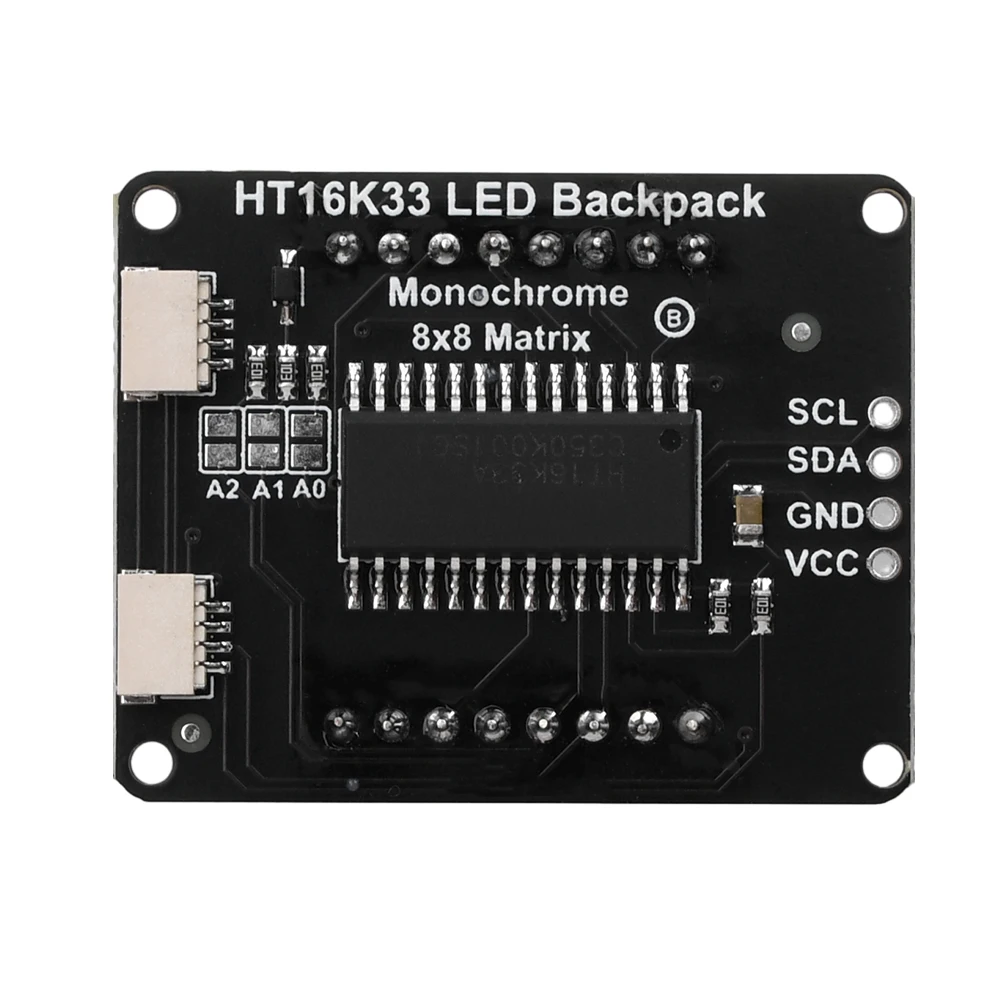 - High-quality HT16K33 I2C driver supports up to 8 shared matrix points, enabling versatile multi-display configurations via only two I2C lines.