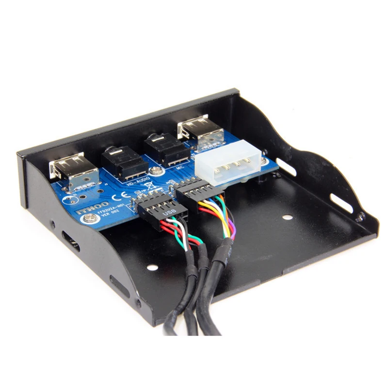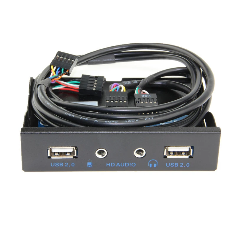 - Transforms a motherboard 9-pin USB header into 4 accessible ports, including 2 USB 2.0 ports, microphone input, and headphone output for front panel setup.