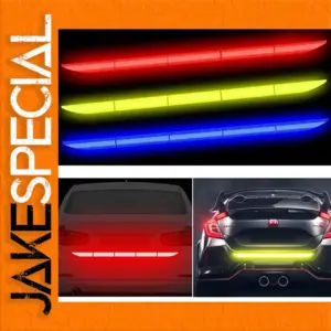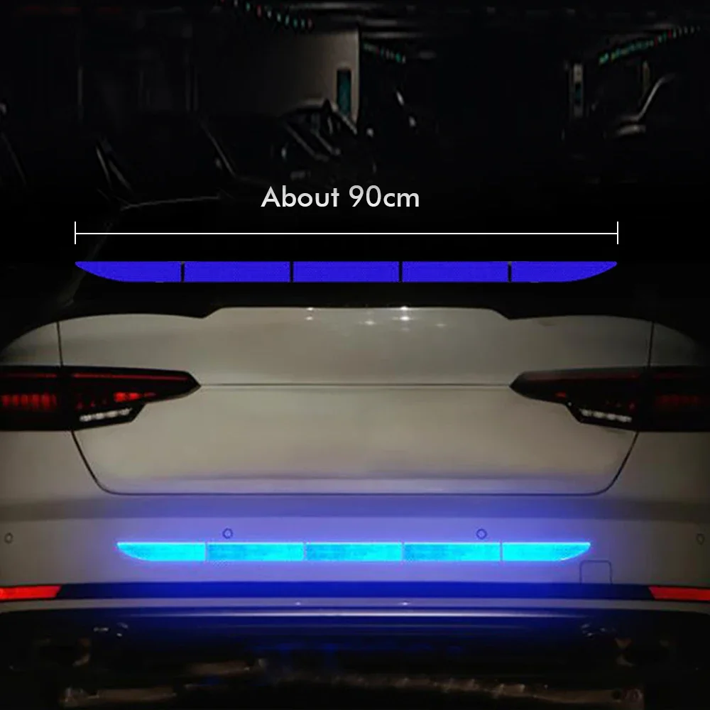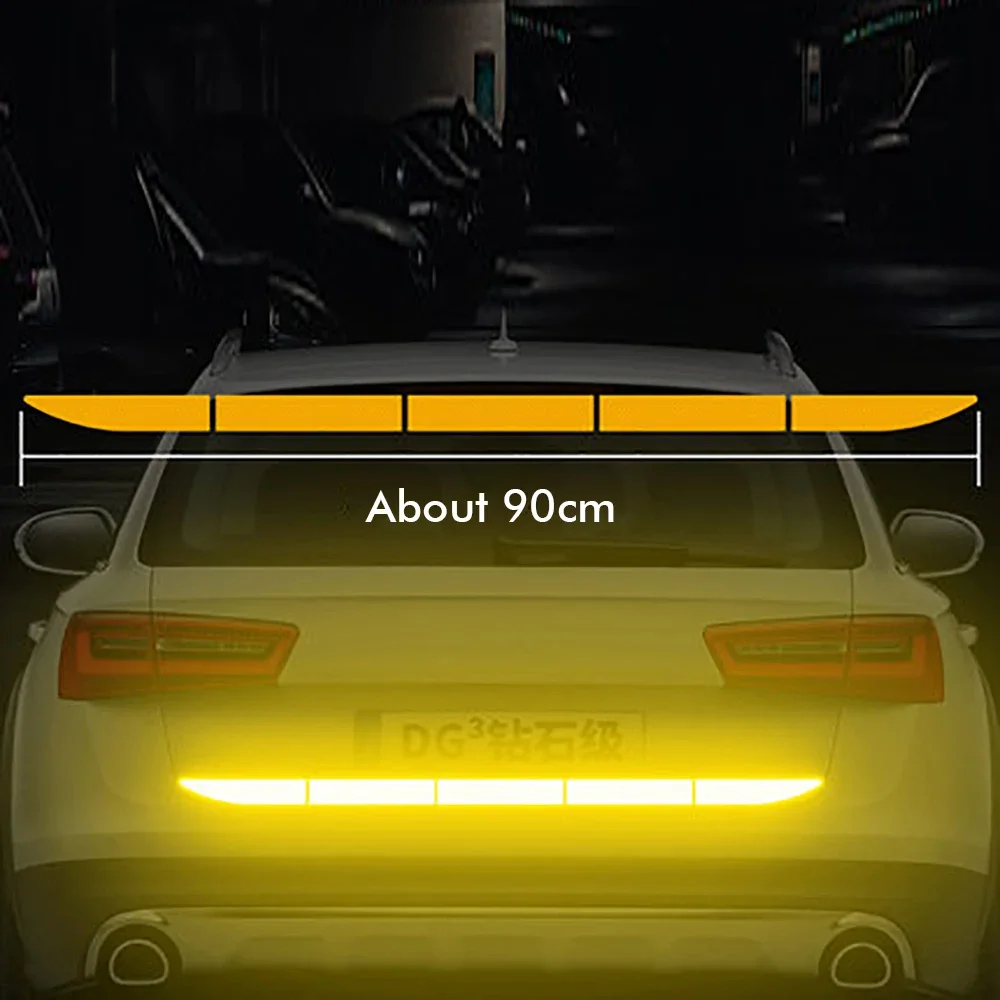 Experience enhanced safety with this vibrant, highly visible car rear trunk reflective sticker, perfect for night driving or low-light conditions. Designed to boost your vehicle’s visibility, this durable strip glows brightly in darkness, warning other drivers and helping you avoid collisions. Made from diamond-grade reflective material, it measures approximately 90 cm long and 3.5 cm wide, fitting perfectly on your trunk. Its sleek, segmented design adds a modern touch to your car’s appearance while serving a vital safety function. Waterproof and sun-resistant, this sticker withstands rain, sun, and general wear, offering long-lasting use with easy application and removal. It’s an essential addition for safe night driving and parking.