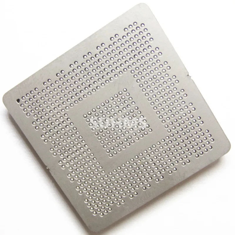 Experience precision with this this 90x90mm SUHMS stencil, crafted specifically for camera assembly and direct heating applications. Made from durable, lightweight metallic material, it features a matte silver-gray finish that emphasizes its sleek, modern design. The stencil's intricate grid of circular apertures, which decrease concentrically toward the center, ensures accurate solder paste deposition during high-precision manufacturing. The prominent “SUHMS” branding in light yellow adds a subtle color contrast and indicates its authenticity. Its slightly rounded edges provide comfort and durability for repeated use. Designed for optimum performance, this stencil supports international standard voltages and power needs. If you're seeking reliability, technical excellence, and efficiency in your camera assembly process, this stencil is an ideal choice to elevate your production quality.