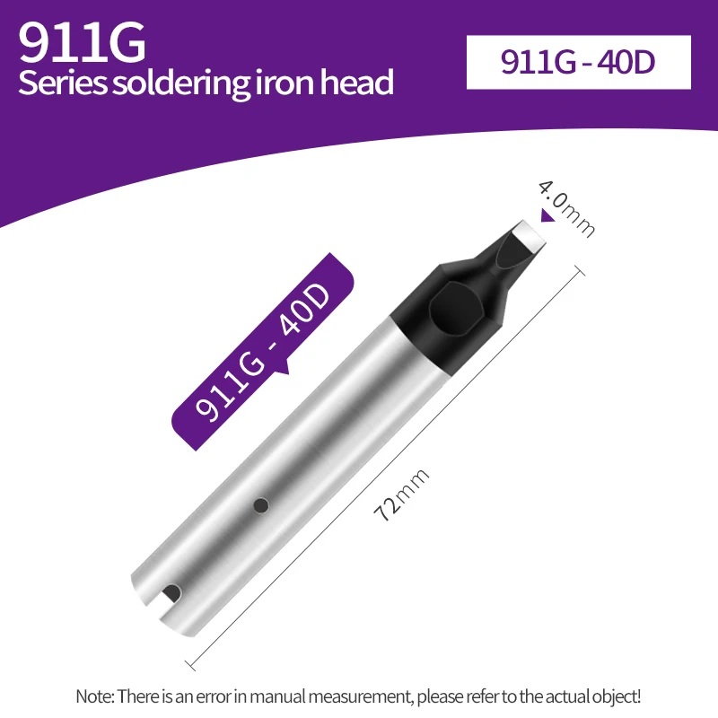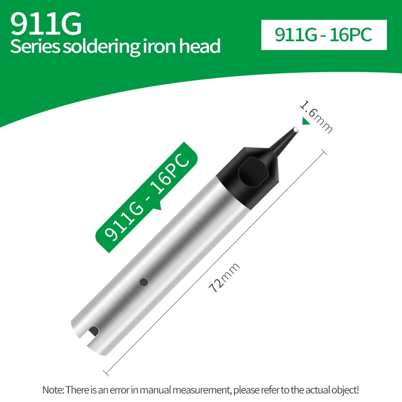 Enhance your automatic soldering operations with this set of high-precision 911G series soldering tips, including models 911G-16D, 911G-16DV1, 911G-20D, 911G-20DV1, 911G-24D, 911G-24DV1, 911G-30D, 911G-30DV1, and 911G-40D/PC. Crafted from durable materials, these tips feature a sleek metallic finish with tapered, pointed working ends for accurate soldering in quick auto-soldering applications. They incorporate small vents for optimal heat transfer and compatibility with various soldering robots and automatic machines. Designed for reliable, high-quality performance, these tips deliver consistent results across a variety of industrial and electronic soldering tasks.