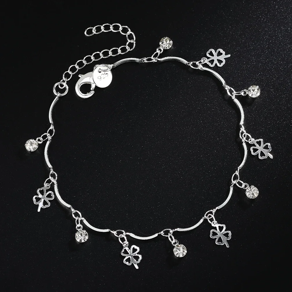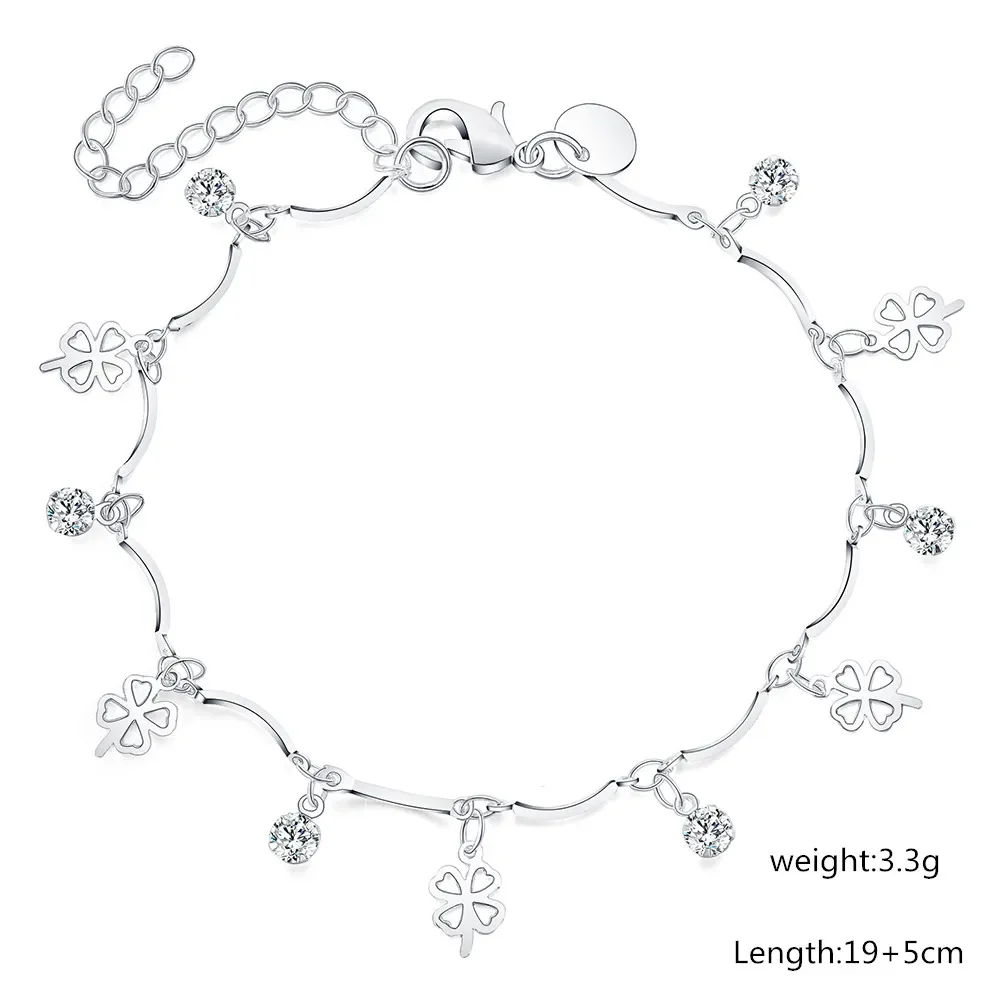 925 Silver Clover Charm Bracelet for Women