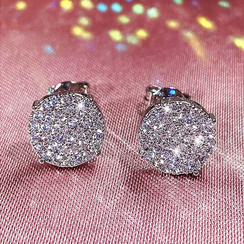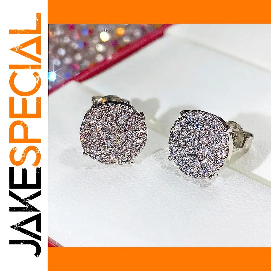 - Features a round shape with a densely encrusted surface of tiny cubic zirconia stones, creating a dazzling sparkle in a pave-style setting, perfect for adding glamour to your look.