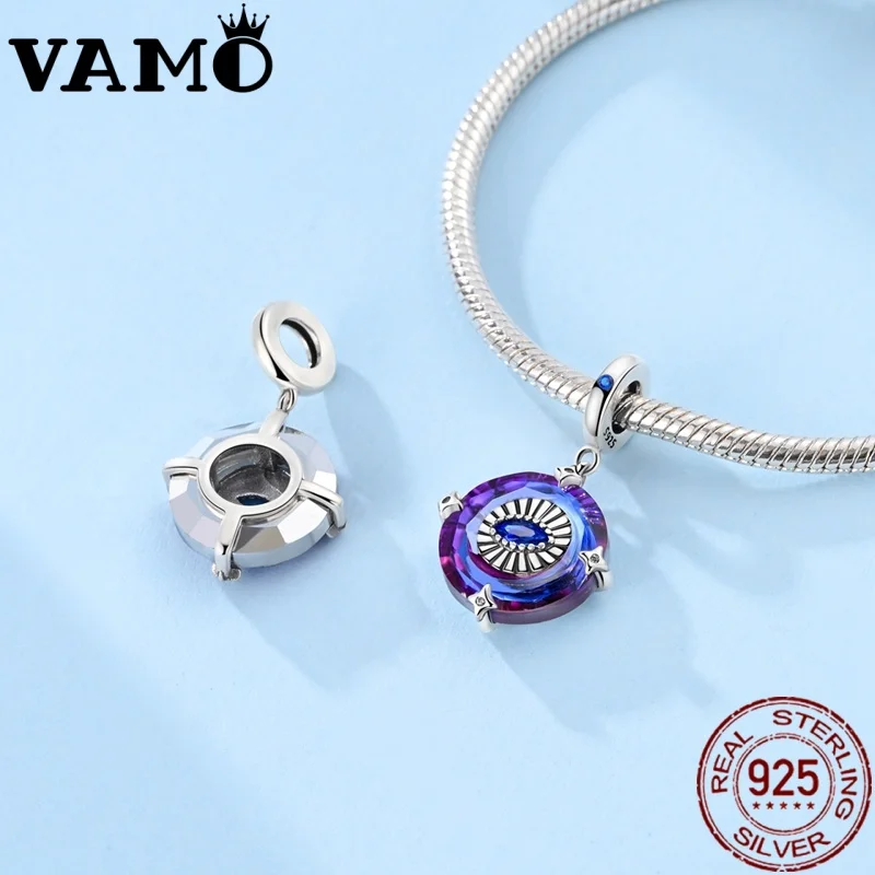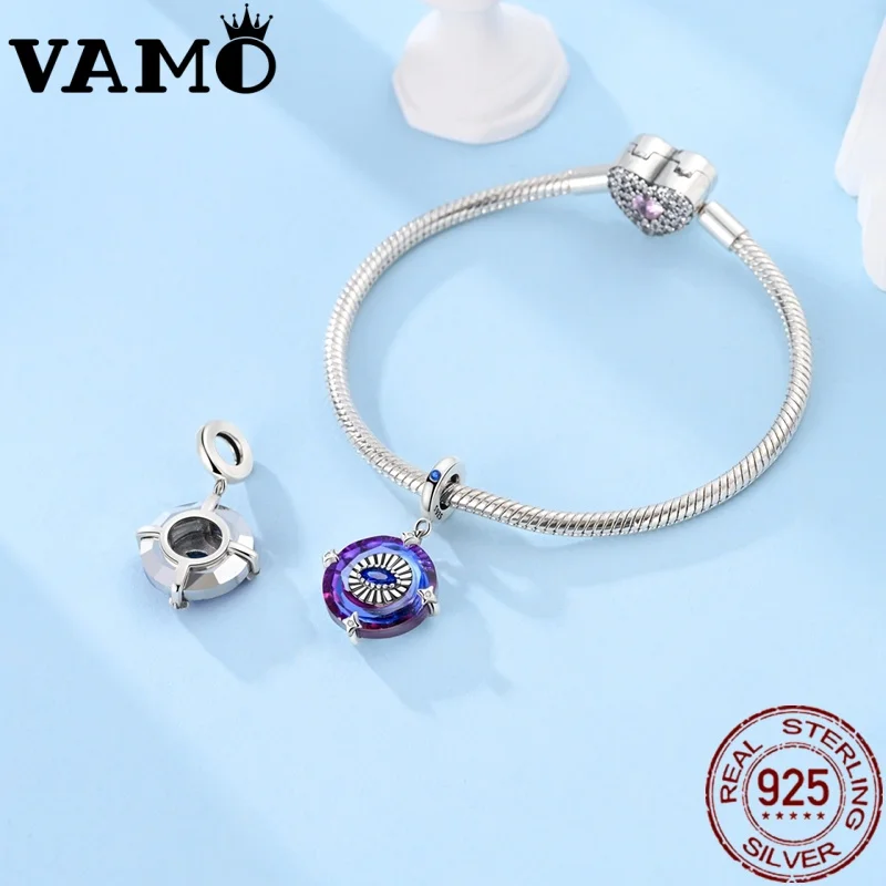 Imagine adding a touch of elegance and artistry to your favorite bracelet with this stunning VAMO original 925 sterling silver bead. Designed as a nugget-shaped charm, it boasts a polished, high-quality silver finish stamped with a “925” sterling mark, ensuring authenticity and durability. Its intricate design features a vibrant, semi-transparent purple hue combined with delicate silver accents, creating a captivating blend of color and craftsmanship. The central motif is a beautifully crafted eye or lens design, encasing a faceted vivid blue gemstone, adding a sparkling pop of color. Small four-petal flower embellishments surround the central element, enhancing its intricate appearance. With its versatile design, it complements various DIY jewelry projects for a personalized look you’ll cherish.