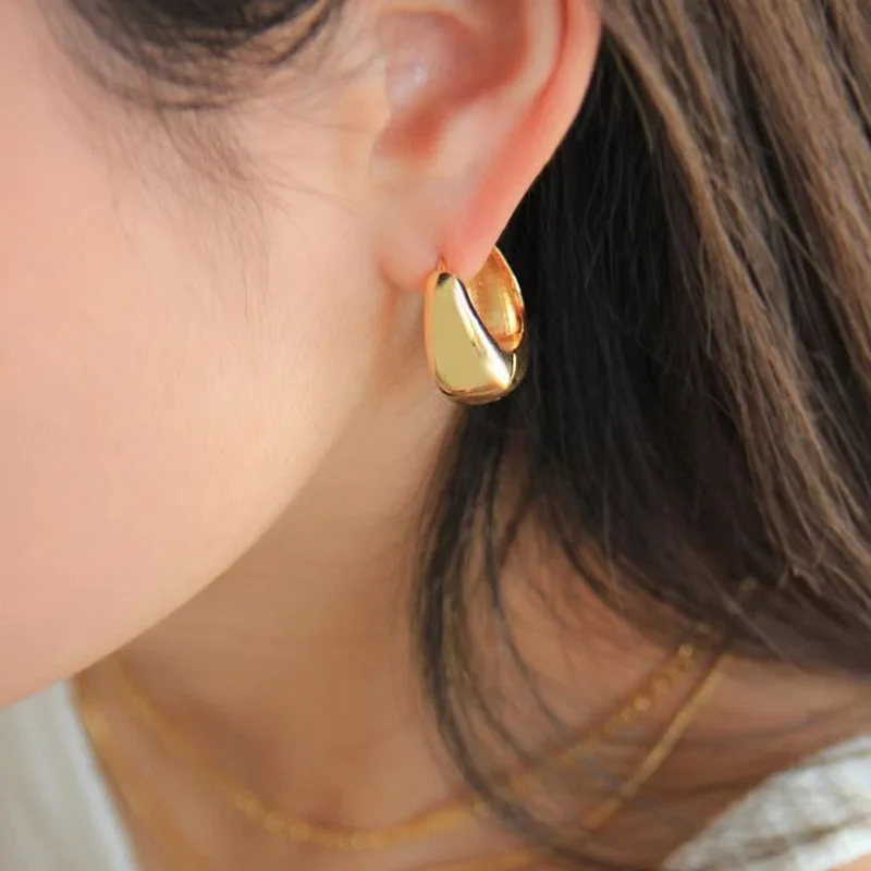 - The earrings feature a smooth, polished surface that highlights their modern aesthetic and reflective quality, suitable for various ear sizes.