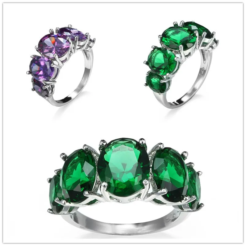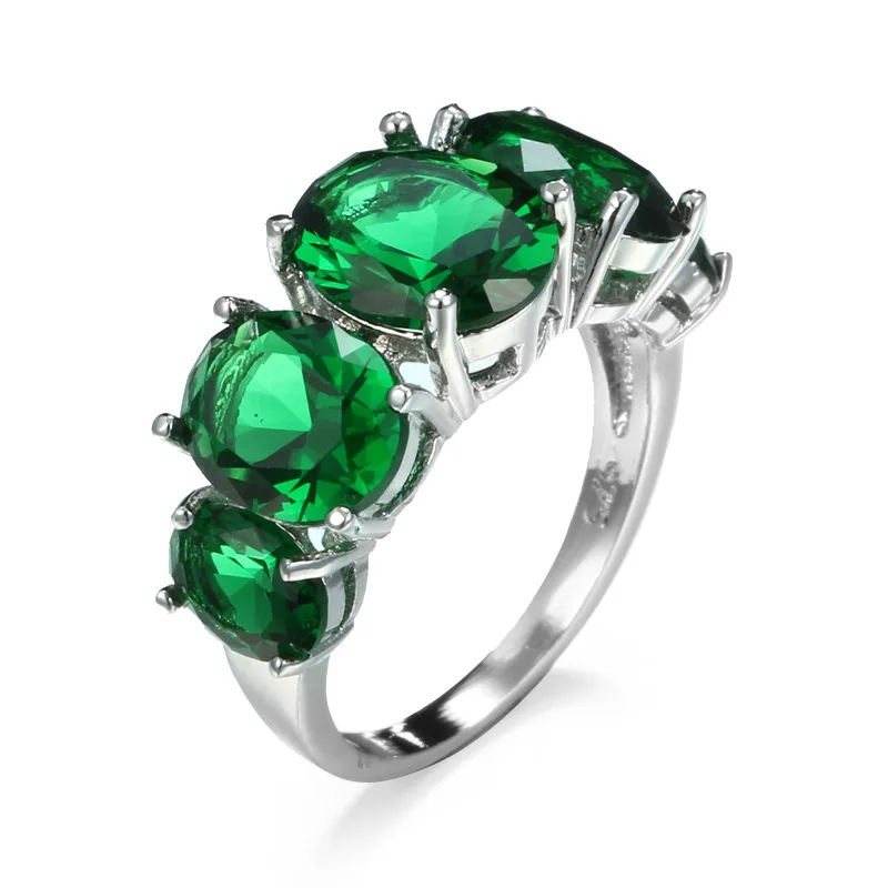 - Features four oval-shaped 5A zircon stones in vibrant green or purple, with multi-faceted cuts that reflect light beautifully.