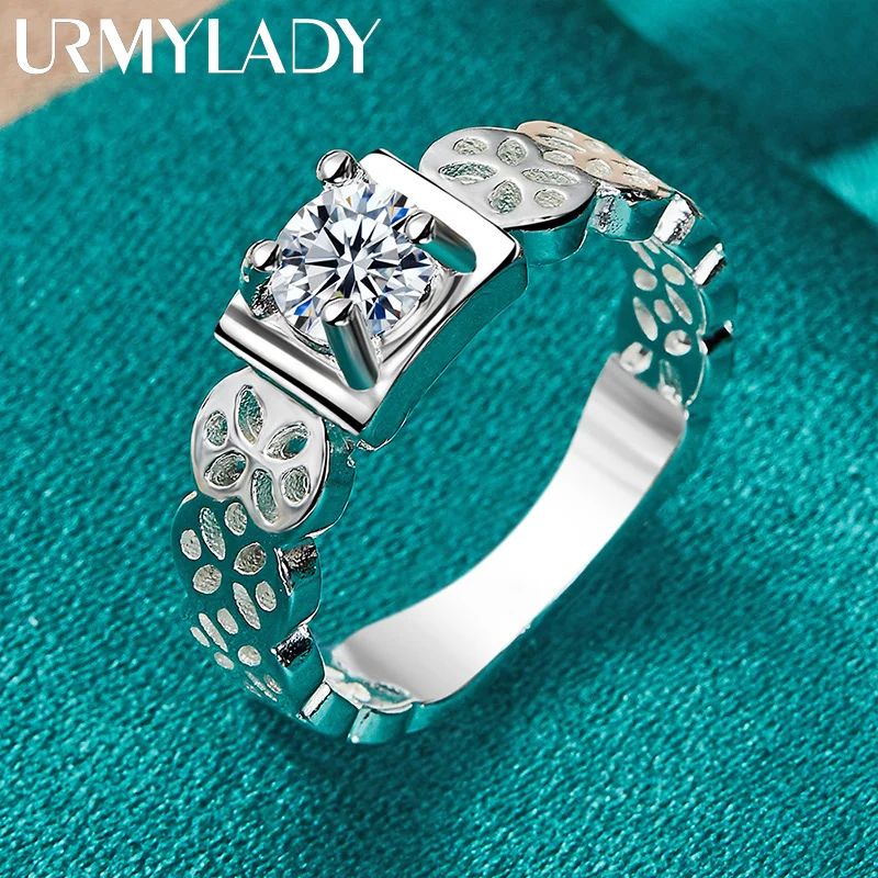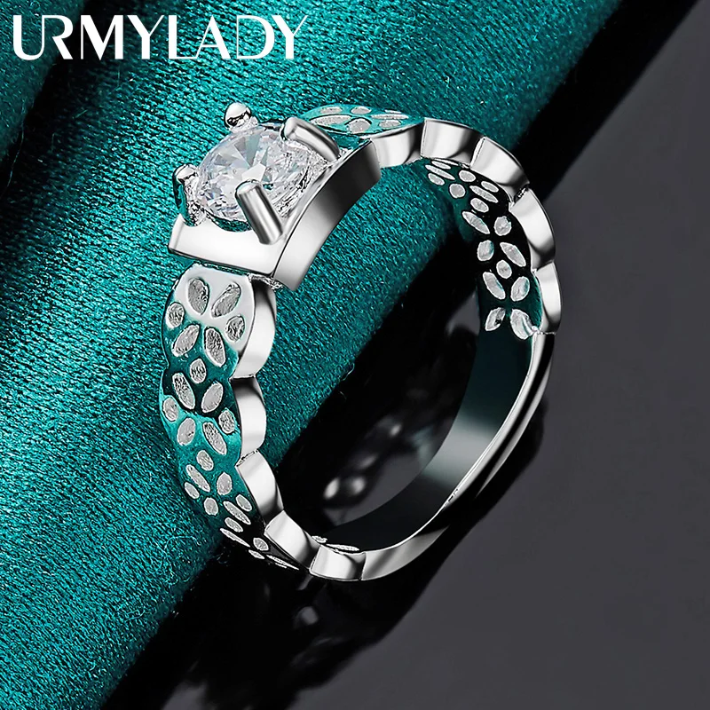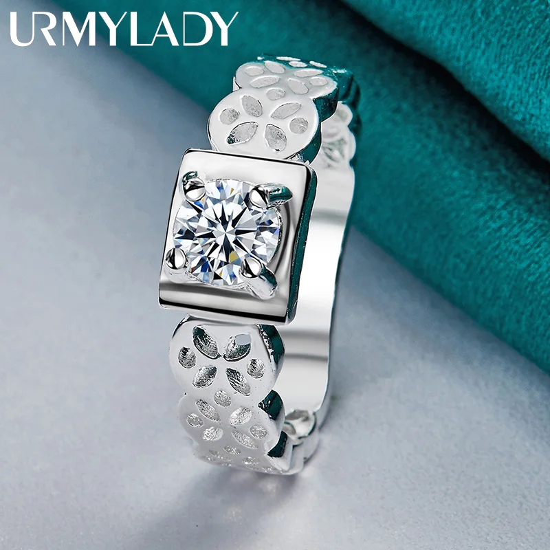 Elevate your elegance with this exquisite women’s ring crafted from 925 sterling silver, featuring a striking square zircon main stone in a sleek tension setting. The hollow band showcases delicate, nature-inspired cut-out patterns, adding a touch of intricate beauty and lightweight comfort. Measuring approximately 3.40 grams and available in sizes 7, 8, 9, and 10, this classic yet contemporary piece is perfect for weddings and engagements. Its polished finish enhances the reflective shine, making it a versatile charm jewelry piece suitable for special occasions or everyday wear. Embrace timeless style and refined craftsmanship with this beautifully designed ring.