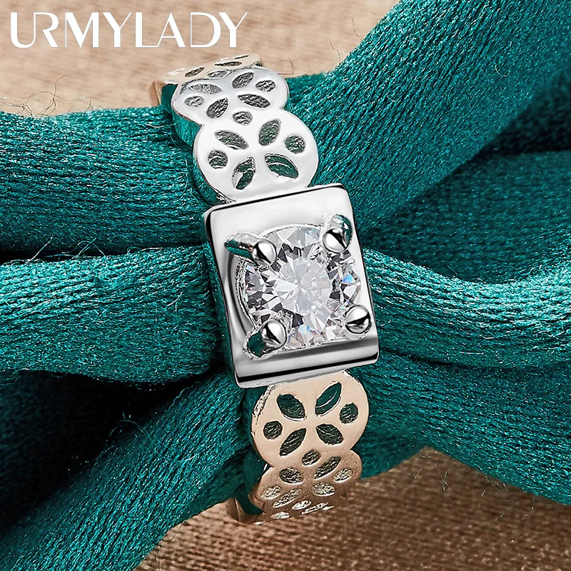 925 Silver Zircon Square Hollow Ring for Women
