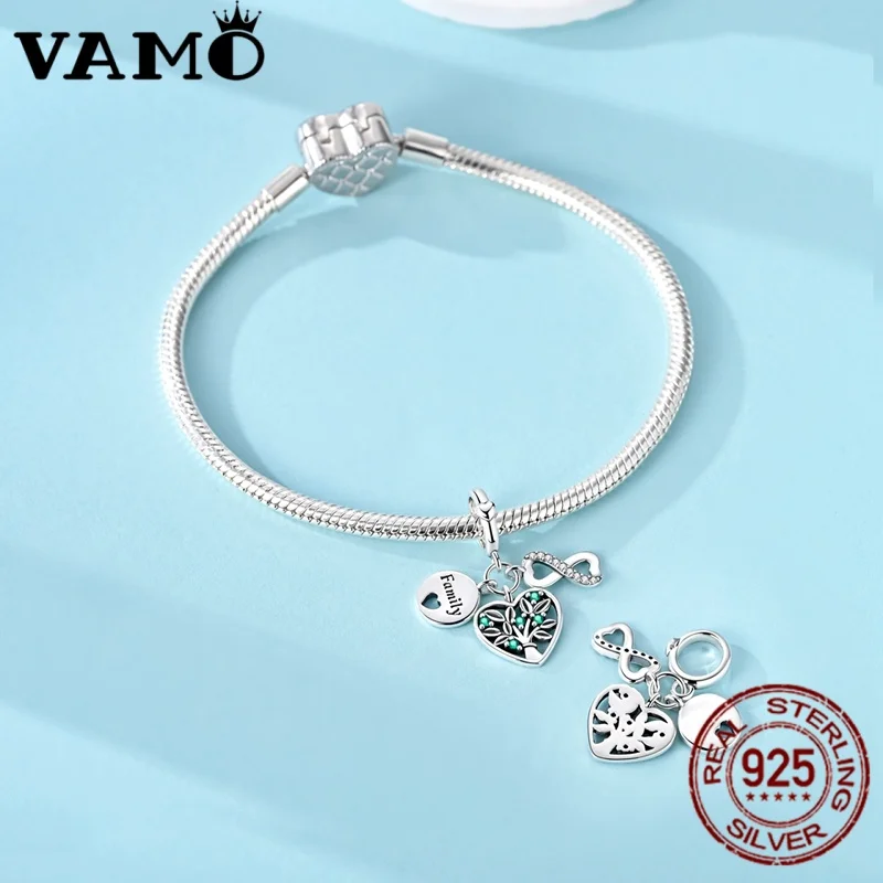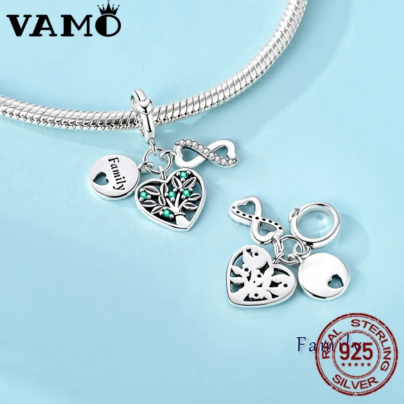 Experience timeless elegance with this 925 sterling silver charm bead, crafted from genuine silver and featuring a sparkling zircon gemstone as its main highlight. Its irregular shape adds a unique, artistic touch, perfectly designed to complement original women’s bracelet collections. The charm showcases intricate detailing, including a heart-shaped openwork pendant with iridescent blue-green stones, a smooth engraved disc with “Family,” and a glittering white heart encrusted with clear rhinestones. Adorned with an infinity symbol for everlasting love, the piece exudes sophistication and sentiment. Certified for authenticity and available in color variant KSC531, this fine jewelry item offers a truly meaningful accessory to cherish.