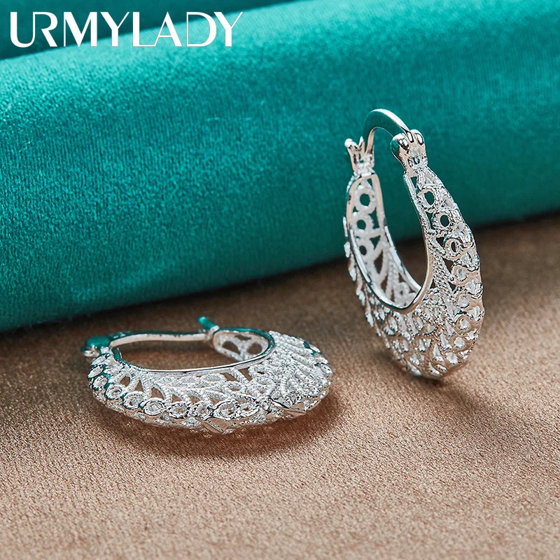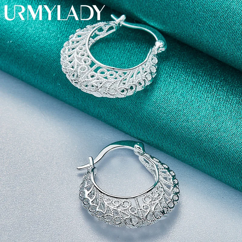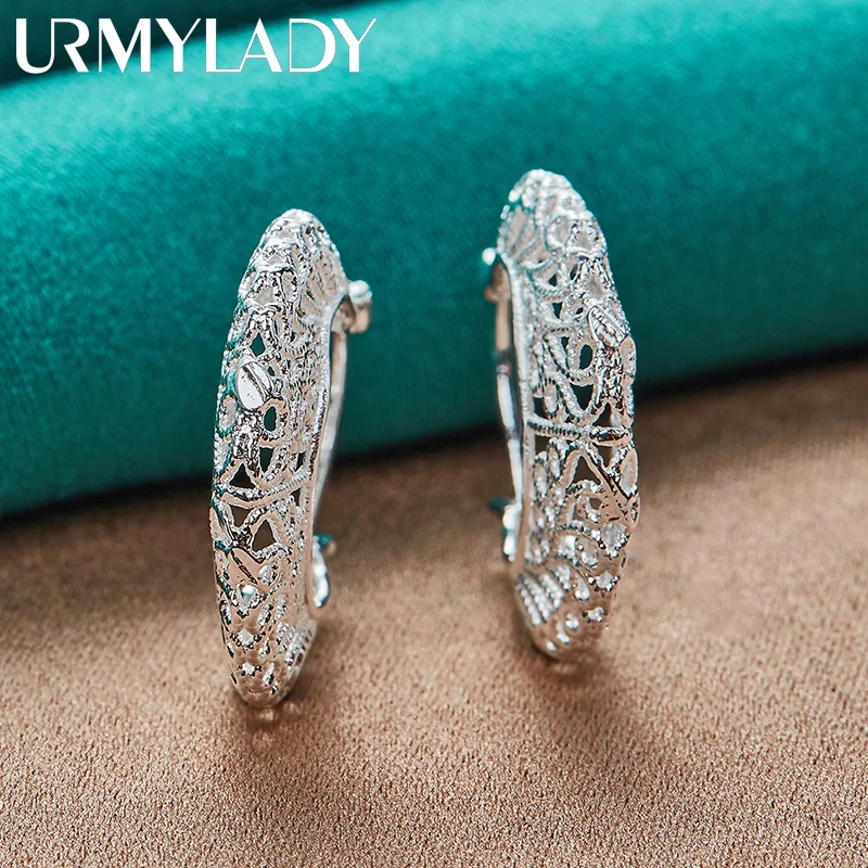 Experience the timeless charm of these exquisite silver moon earrings from URMYLADY. Crafted with precision from 925 sterling silver, these earrings feature a delicate hollow moon shape with intricate filigree patterns, creating a lace-like appearance. Their polished, shiny finish enhances the ornate detailing, making them perfect for romantic occasions like weddings, engagements, or fashionable outings. The medium-sized, semi-circular design with a prominent outer rim adds texture and depth, while the clip-on mechanism ensures easy wear without pierced ears. These earrings offer a harmonious blend of elegance and comfort, making them a versatile accessory for any stylish wardrobe. Enjoy the sophisticated glow and legendary craftsmanship in every wear.