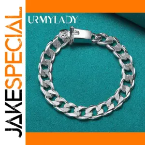 Experience the timeless sophistication of this sleek, unisex silver bracelet designed for both men and women. Crafted from high-quality 925 sterling silver, this piece features bold, 10mm wide oval-shaped links with a polished, reflective surface that showcases a modern geometric pattern. The 20cm length comfortably fits most wrist sizes, making it perfect for special occasions like parties or weddings. With a substantial weight of 31.1 grams, this bracelet exudes confidence and style. Its streamlined, classic design seamlessly blends contemporary minimalism with traditional elegance, ensuring it remains a versatile accessory in your jewelry collection. The durable box clasp provides secure closure while maintaining the bracelet’s sleek appearance.