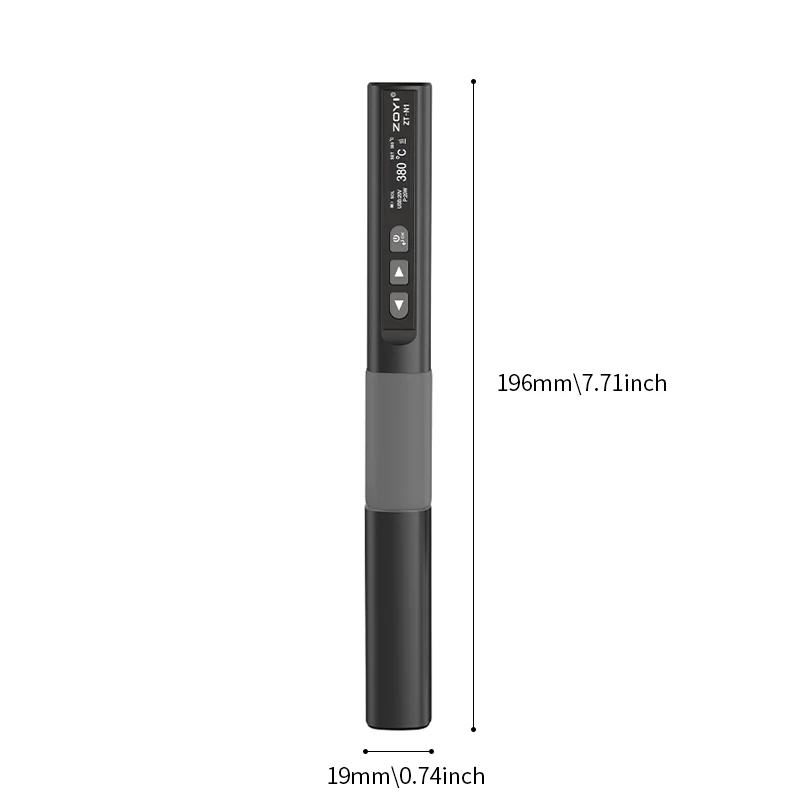 - Portable 96W soldering iron with a compact 196mm length and 19mm diameter for comfortable use in tight spaces.