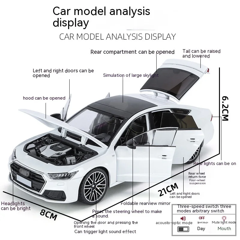 This remarkable A7 alloy model sedan is more than just a display piece; it's an invitation to immerse yourself in the world of finely crafted collectibles. Picture it on your shelf, instantly elevating your space while showcasing your passion for automotive artistry. Make it yours today and enjoy the intricate details and impressive features that this model offers. Add this unique piece to your collection and experience the joy of luxury craftsmanship!
