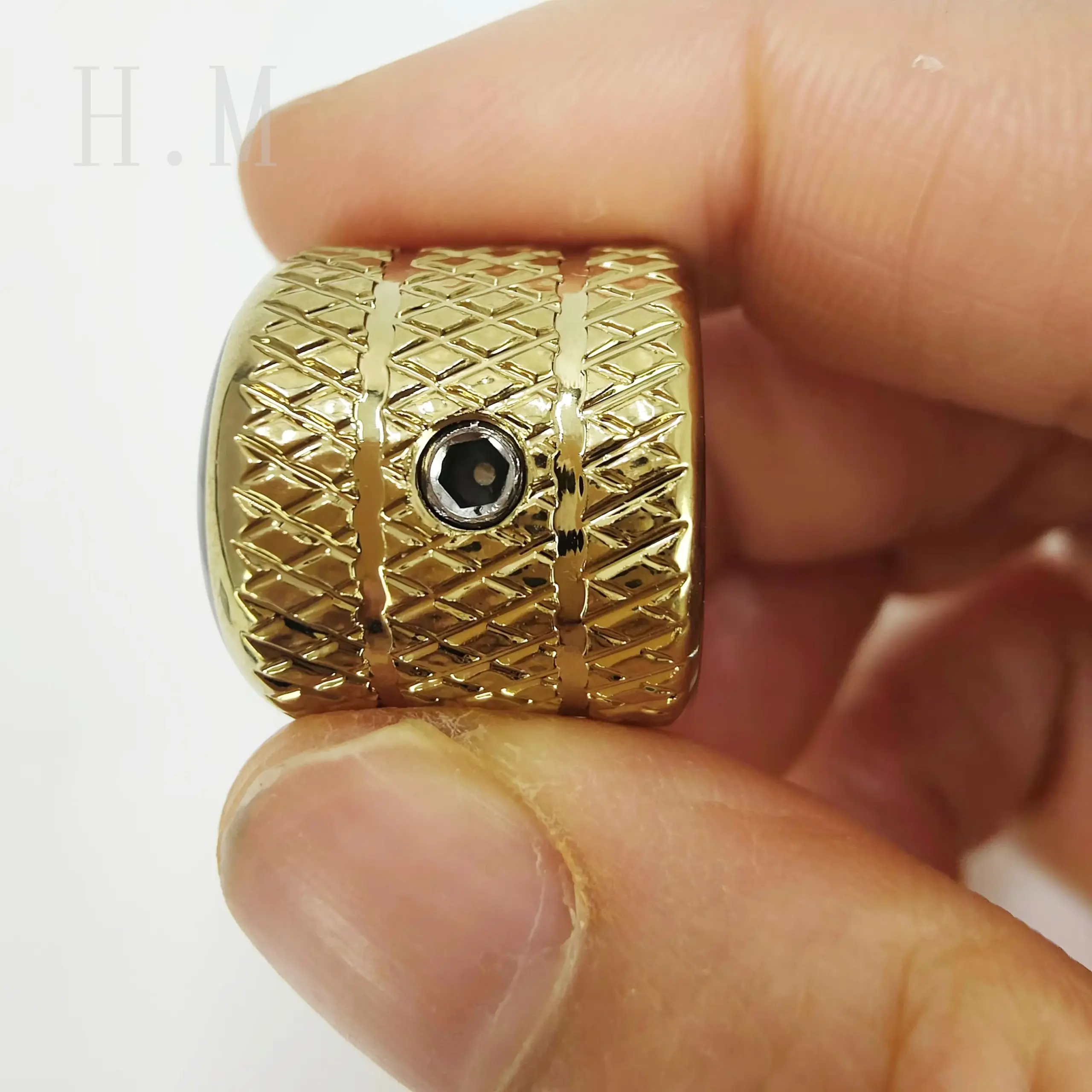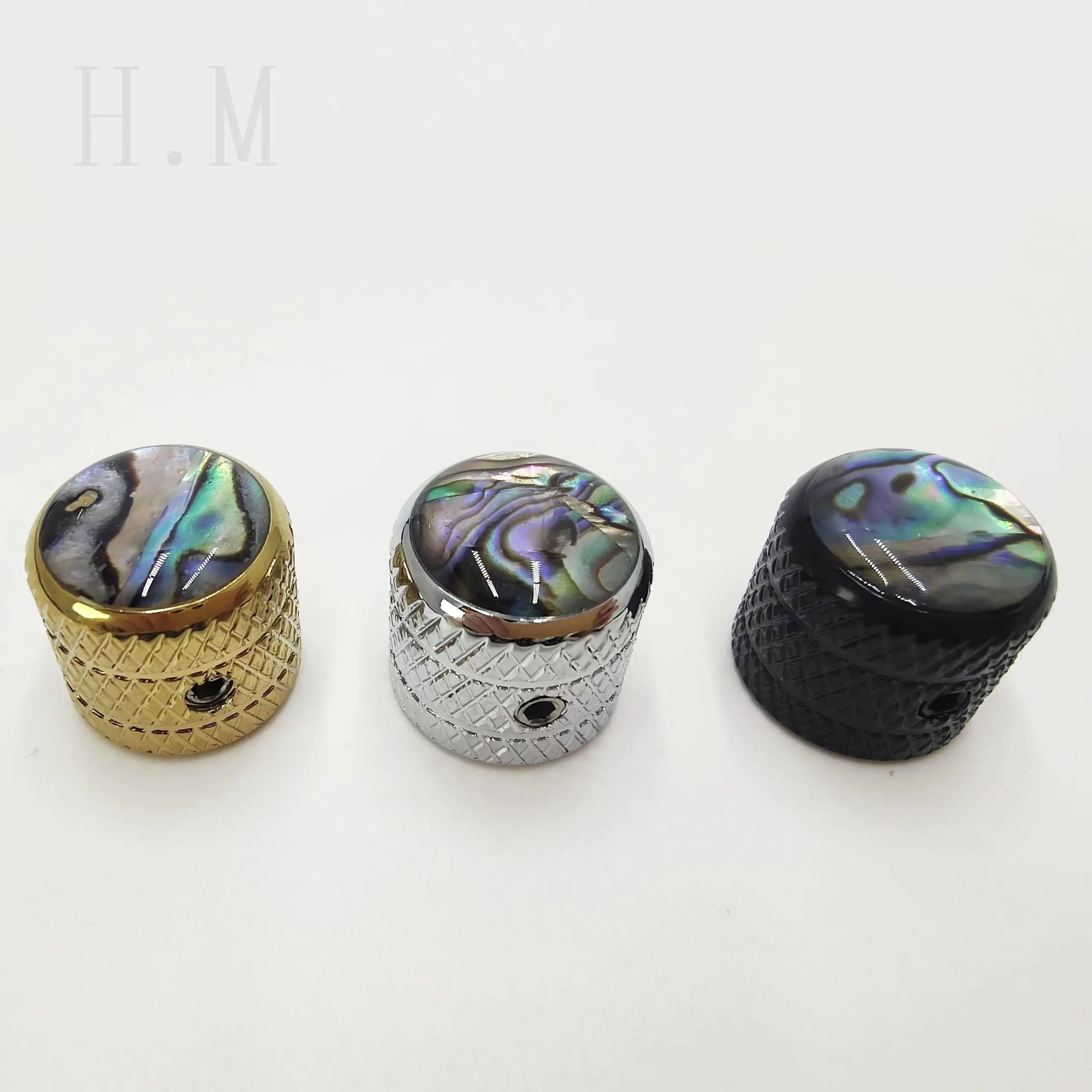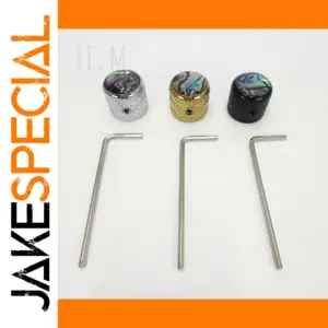 Transform your guitar or bass with this stunning inlaid abalone shell knob, designed to enhance both look and performance. Crafted from high-quality zinc alloy, each knob features a vibrant, swirling abalone shell inlay in hues of green, blue, purple, and black, creating a mesmerizing, iridescent shimmer. Its cylindrical shape is topped with a polished cap, seamlessly integrated with the textured diamond-patterned metal base for a firm grip and rugged aesthetic. Available in three sleek metallic finishes—gold, silver, and black—these knobs bring a balance of natural beauty and modern style to your musical instrument. Easy to install with the included 2mm wrench, they provide both visual appeal and functional precision, elevating your instrument’s appearance and playability.