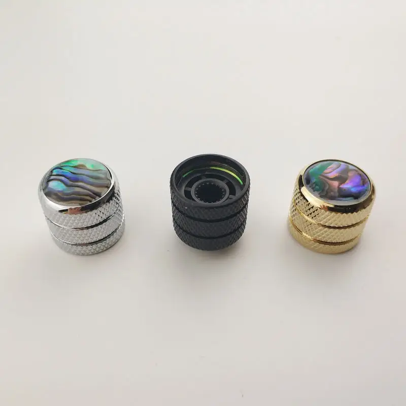Transform your instrument's look and feel effortlessly with the this control knob. Its iridescent abalone top and sleek metallic finish promise not only enhanced aesthetic appeal but also reliable, smooth control. Imagine the pride of owning a guitar fitted with this premium component, elevating your playing experience. Whether for professional gigs or personal enjoyment, this knob is a stylish addition that makes your instrument truly stand out. Don't wait—make this essential upgrade now and enjoy the perfect mix of craftsmanship and beauty with every strum.