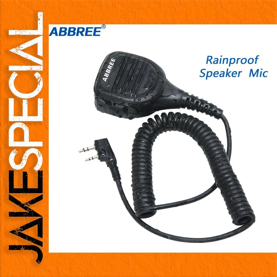 The ABBREE AR-760 rainproof speaker microphone is designed for two-way radios and features a single push-to-talk (PTT) button for quick communication. It offers wired connectivity with a two-pin standard; 3.5mm stereo for the ear (top pin) and 2.5mm stereo for the microphone (bottom pin), with an 11mm center distance between the pins. The effective usage distance is below 1.5 meters. This microphone is compatible with a variety of models from BAOFENG (like UV-5R and UV-32), RETEVIS (such as RT-5R and H-777), KENWOOD (TH and TK series), and more, making it a versatile choice for outdoor use.