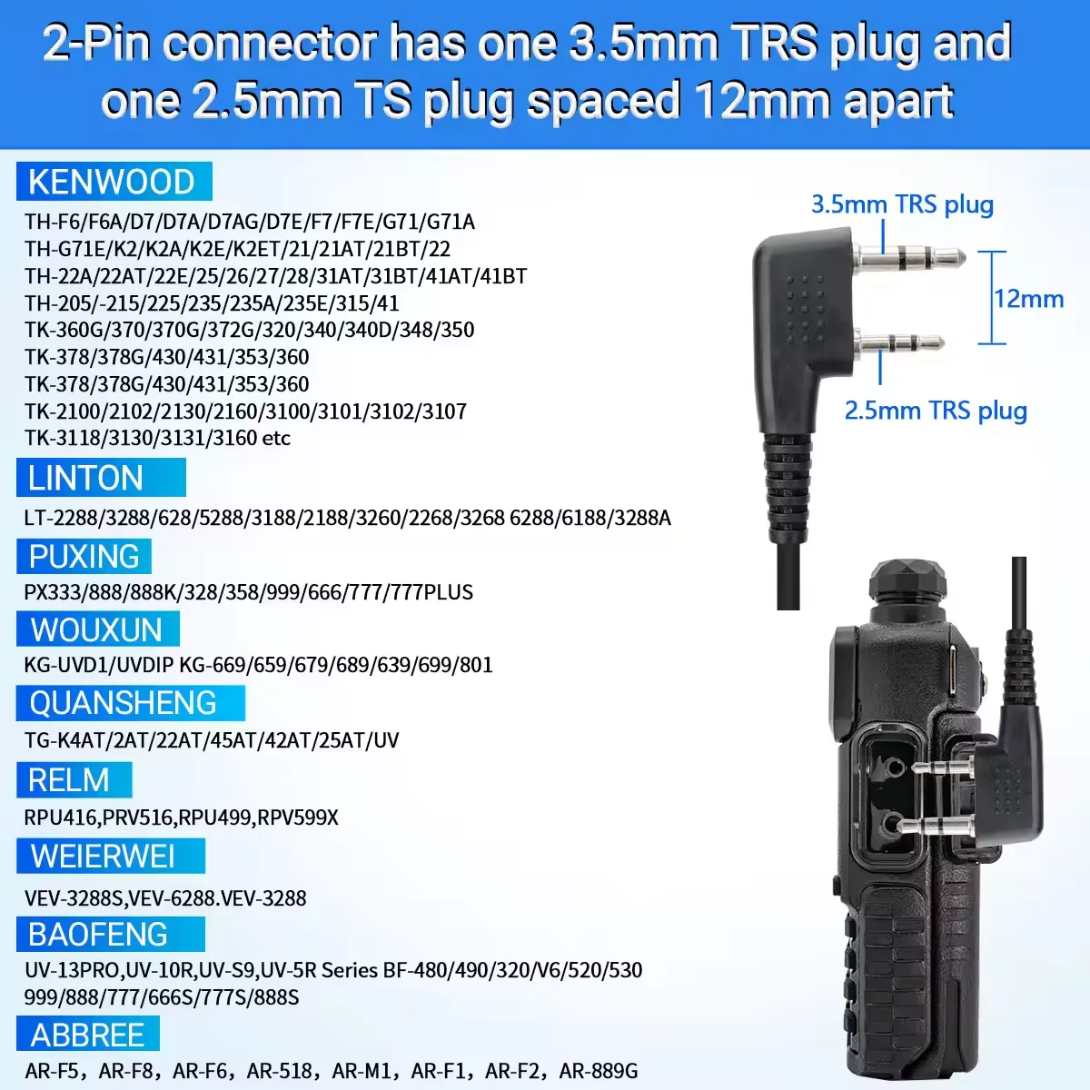 - Wired connectivity with a K Plug connector ensures compatibility with various walkie talkie models.