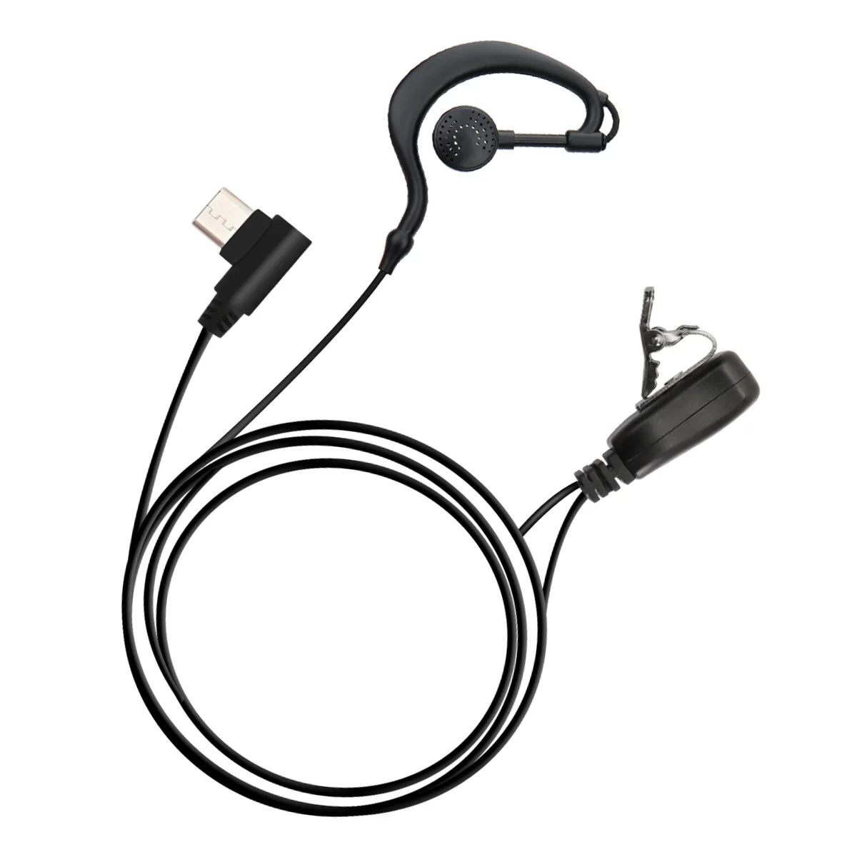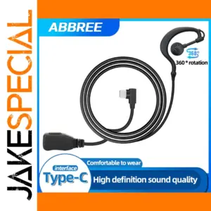 Experience seamless communication with this robust and comfortable ABBREE walkie talkie headset. Designed for professional use, it features a sleek black finish with subtle white accents on the cable, creating a clean and modern look. The headset’s ergonomic G-shaped earhook offers a secure, comfortable fit for extended wear, while the textured circular earplug with tiny perforations ensures clear sound delivery and noise isolation. Equipped with a sizable, easy-to-press PTT button and a high-definition microphone, this headset ensures your voice is heard loud and clear. Its Type-C connector offers a reliable wired connection, ideal for reliable two-way communication in demanding environments. Whether you're on tactical missions or professional work, this headset delivers durability, comfort, and exceptional sound quality.