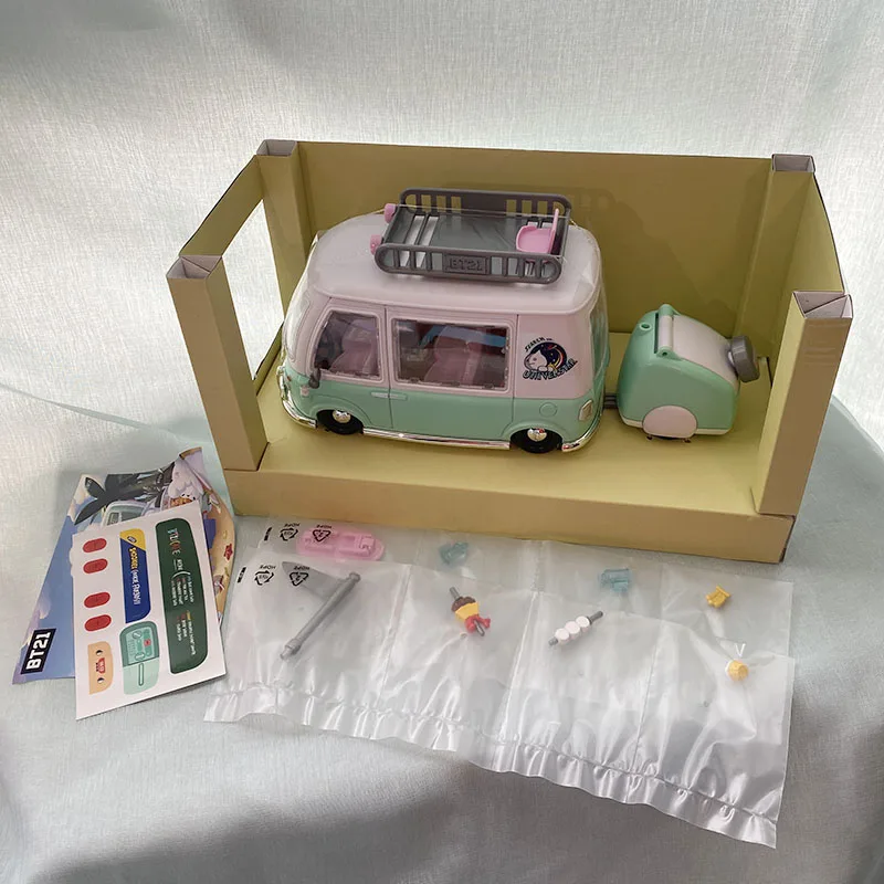 About 27cm long BT21‘s Camping Car ABS PVC Material Simulation Model Holiday Gifts Christmas Gifts Toys For kids