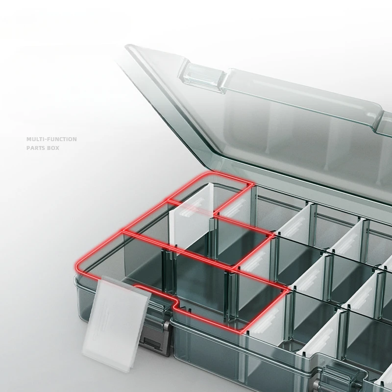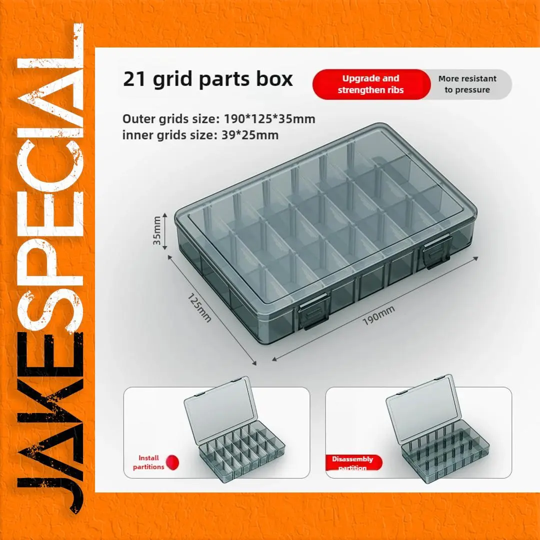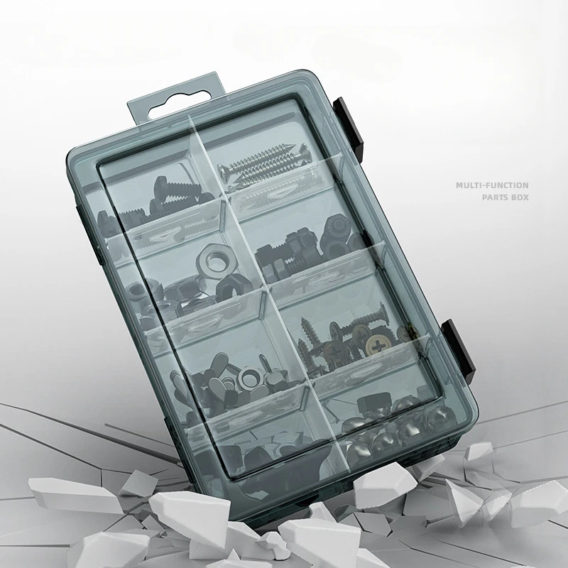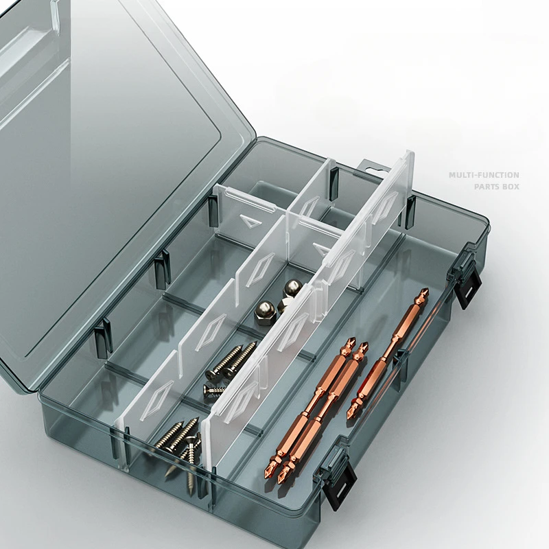 Experience the unmatched convenience of this ABS plastic tool box, thoughtfully designed for storing and classifying screws, electronic components, and drill bit accessories. With its transparent design, you can easily view and access all your components at a glance. Crafted from high-quality ABS plastic, the tool box ensures a durable and resilient storage solution that stands up to regular use. The customizable detachable grid system allows you to adjust the layout to suit your needs, promoting efficient organization. Featuring strong clasps, the box securely maintains its contents, making it the perfect companion for both professional tasks and personal projects.