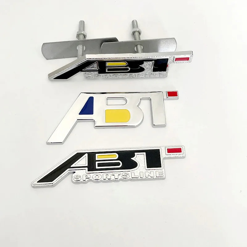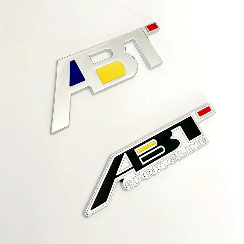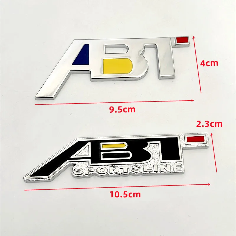 Enhance your vehicle’s appearance with this premium ABT badge emblem, crafted from durable alloy metal and measuring approximately 9.5 cm x 4 cm or 10.5 cm x 2.3 cm. Its sleek, modern design features a glossy reflective surface in black, chrome, or silver finishes, accentuated by bold, raised metallic lettering and sharp geometric lines. Perfectly suited for front grille, rear trunk, or fender placement, this badge adds a touch of sportiness and sophistication to any vehicle. Its easy installation process ensures a seamless upgrade, giving your car an instantly customized, high-end look that highlights your personal style. Invest in this distinctive emblem to stand out on the road and showcase your love for quality automotive accessories.