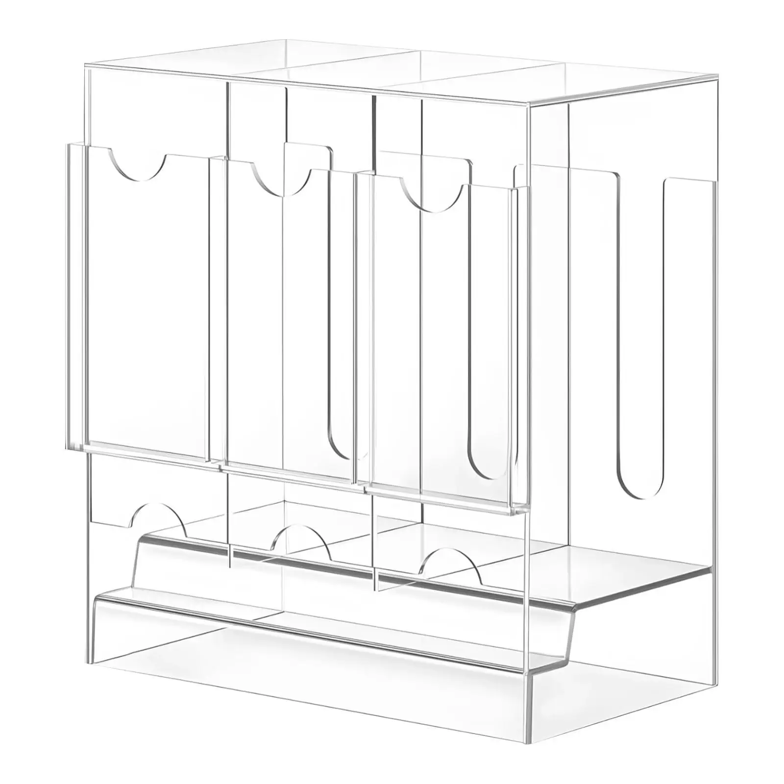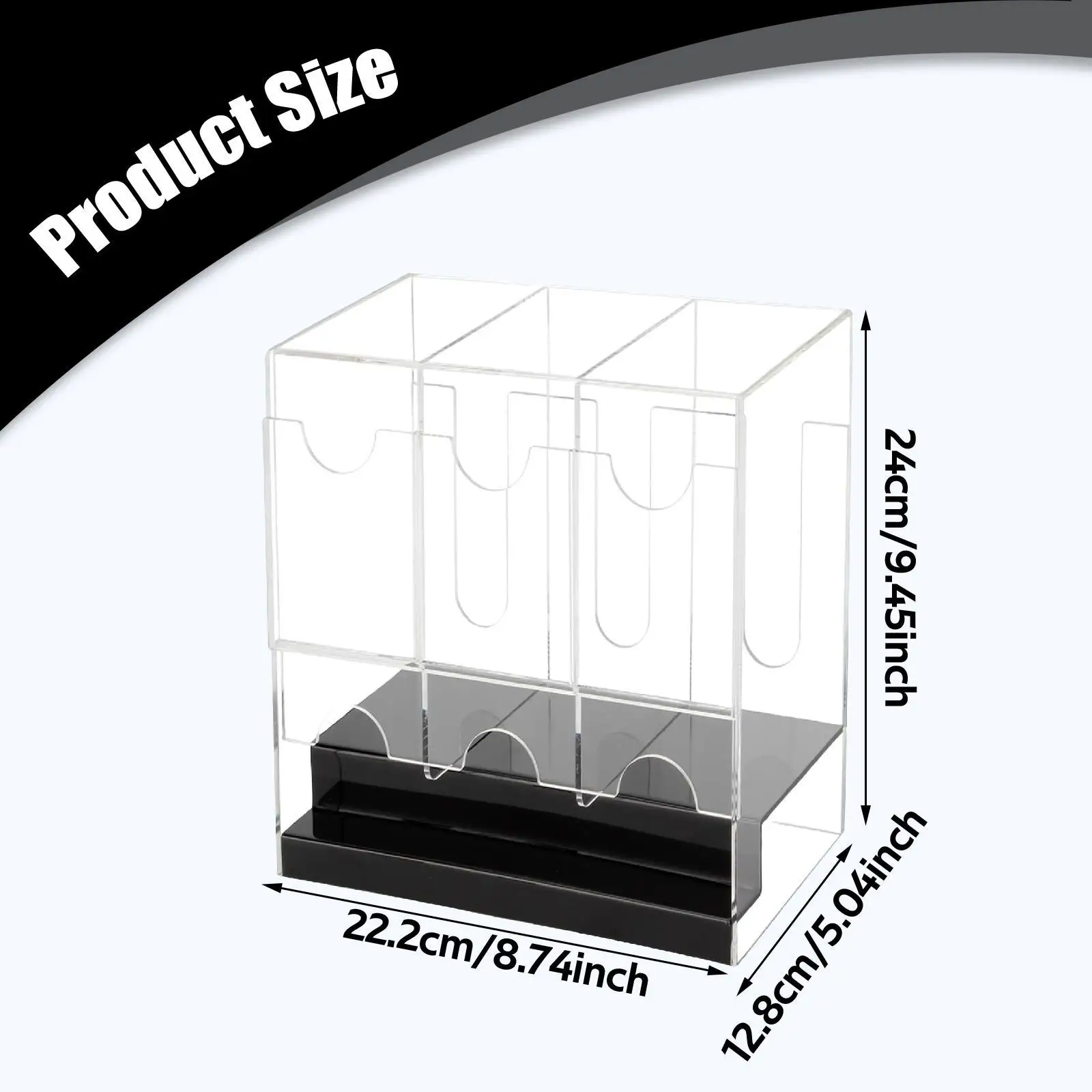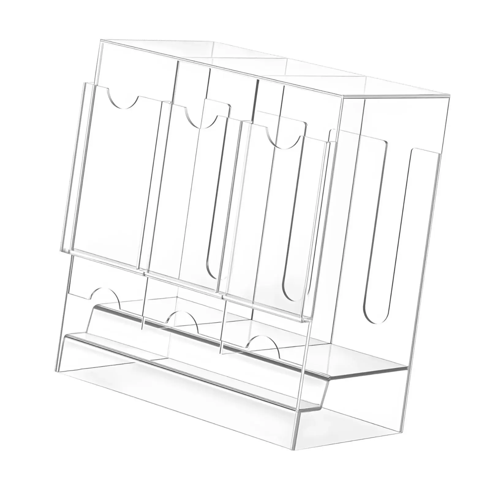 Imagine showcasing your valuable booster packs with this stylish acrylic card pack dispenser. Crafted from durable, transparent acrylic material, it offers a modern and clean aesthetic that highlights your collection beautifully. Its three spacious compartments provide secure storage and easy access, making sorting and retrieving your collectible cards effortless. The clear, glossy finish allows for full visibility, helping you keep track of each booster pack effortlessly. Designed with straight, smooth edges and a semi-circular cutout at the front for easy removal, this dispenser combines function and visual appeal. The non-slip base ensures stability during use, making it ideal for both display and practical organization.