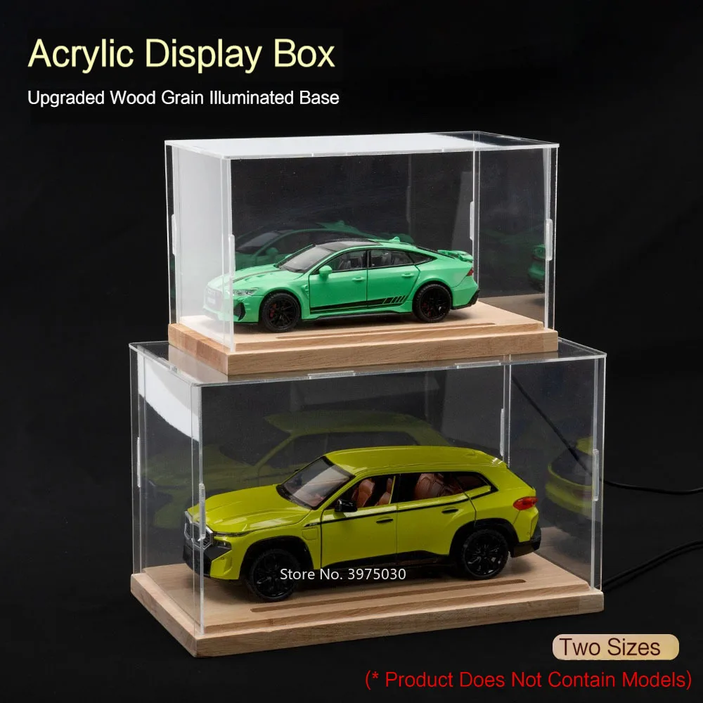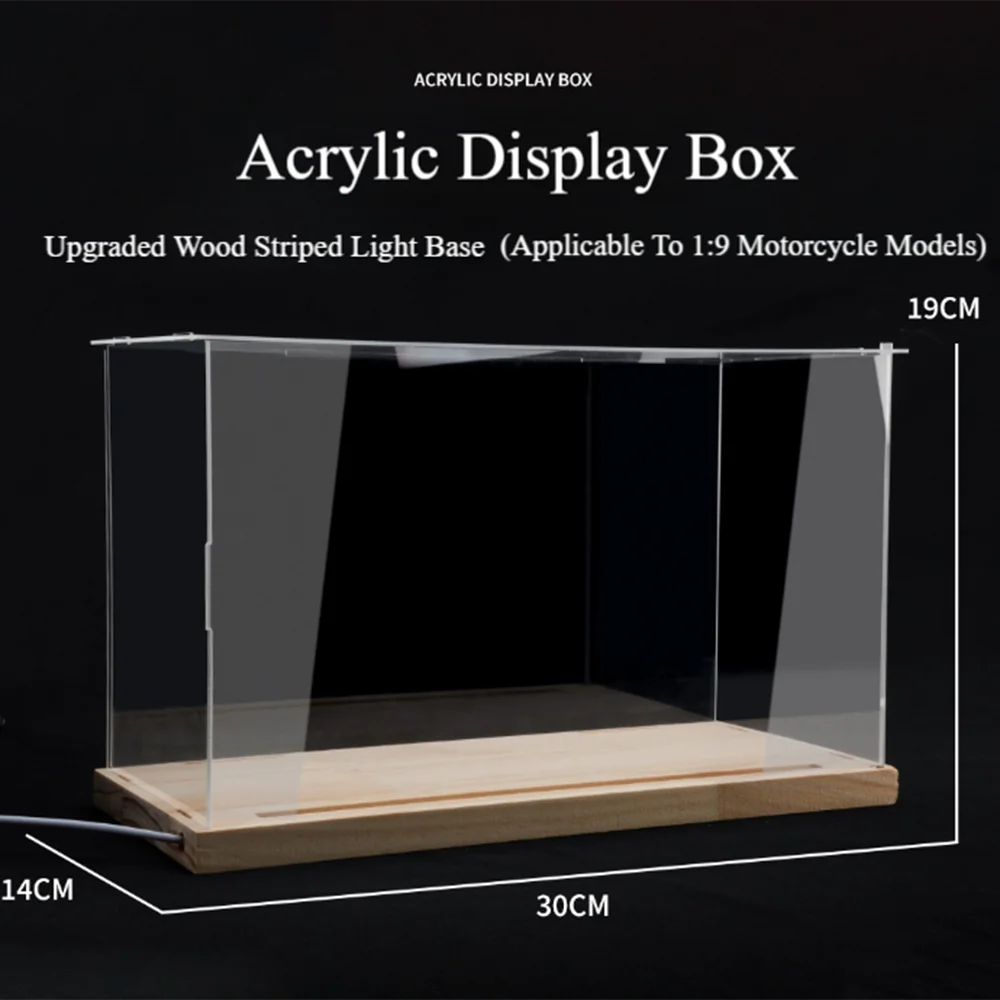 Enhance your collectible models with this sleek transparent acrylic display box, available in three sizes: approximately 19.5 x 11 x 11.5 cm for 1/32 scale, 24 x 13.5 x 15 cm for 1/24 scale, and 30 x 14 x 19 cm for 1/9 scale. Crafted through die-casting and featuring a minimalist design, it offers clear, unobstructed viewing of your models. The box includes built-in LED lighting powered by a lithium battery, providing an eye-catching showcase. Its durable, dustproof construction makes it perfect for displaying your scale model cars and motorcycles while protecting them from dust and damage, creating a refined display for enthusiasts and collectors.