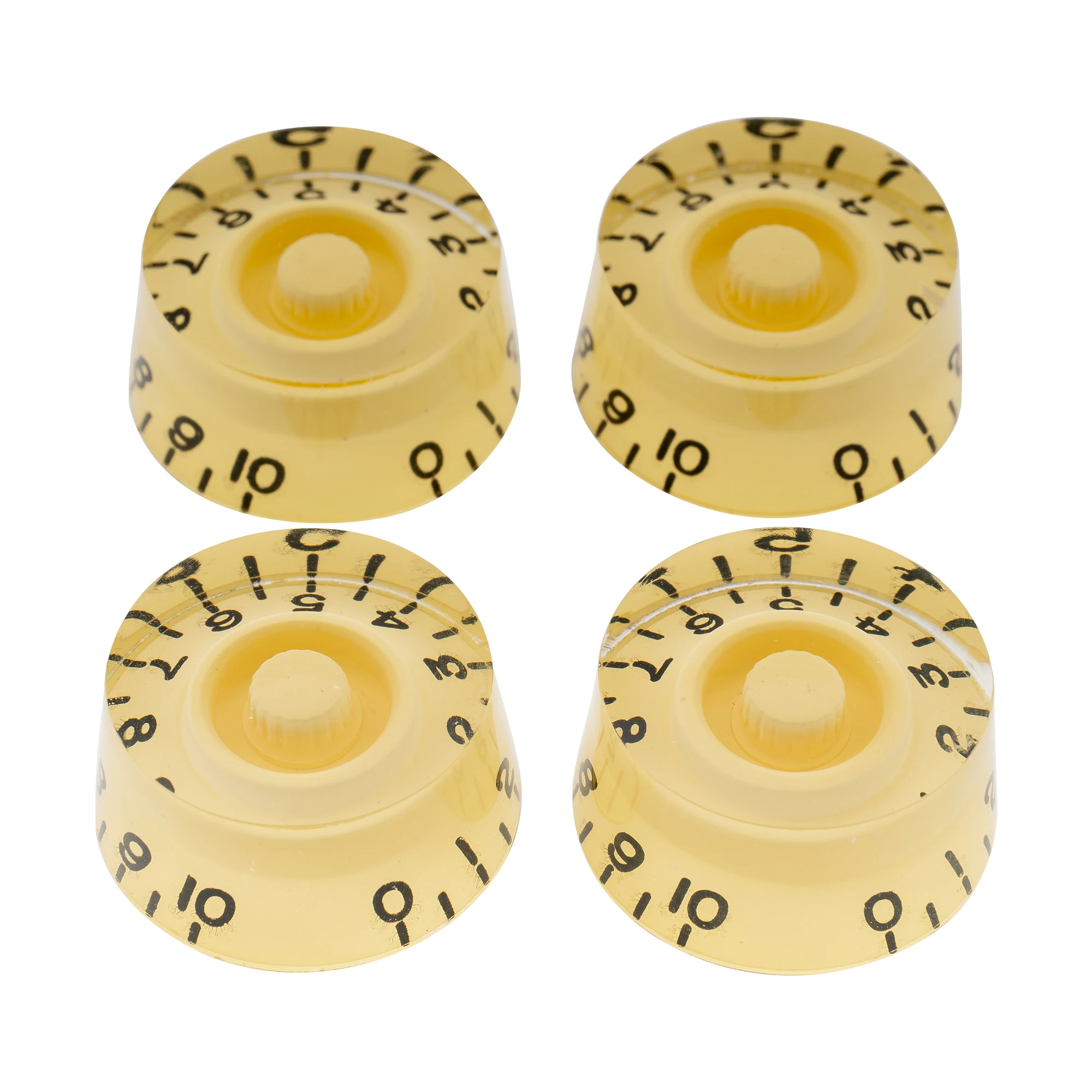 Enhance your guitar’s aesthetic and functionality with these sleek acrylic speed control knobs, designed with a 6mm inner hole, 26mm base diameter, and 13mm height. Featuring a metric coarse 18-spline fit for 6mm split-shaft potentiometers, they are compatible with imported Asian and European models such as Epiphone Les Paul, SG, and similar guitars made in Japan, Korea, and Indonesia. Available in vibrant colors including amber, black, cream, gold, transparent, and white, these durable, polished knobs provide precise adjustment with white numerical markings from 0 to 10 and a textured cylindrical grip for easy turning, perfect for customizing your guitar’s control interface.