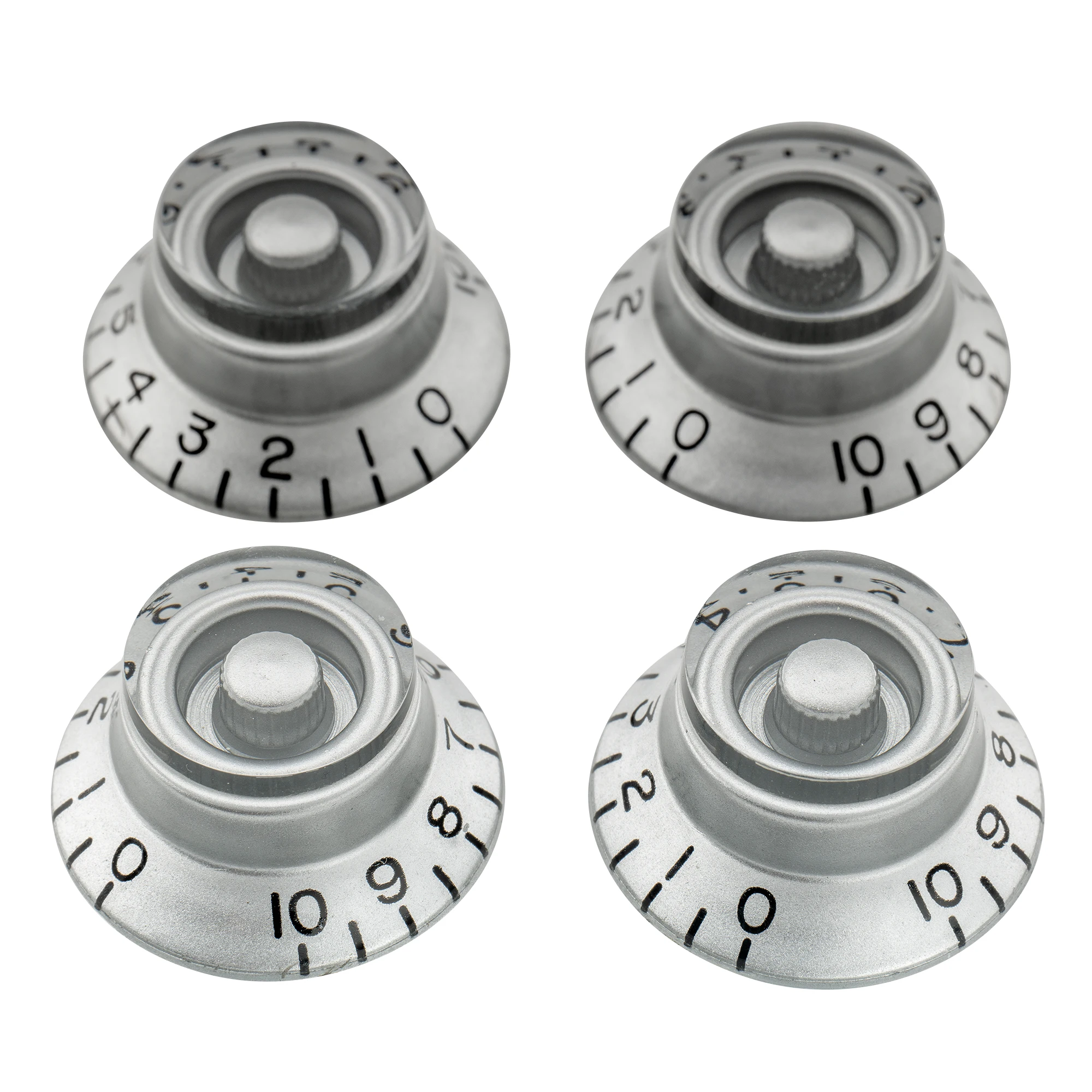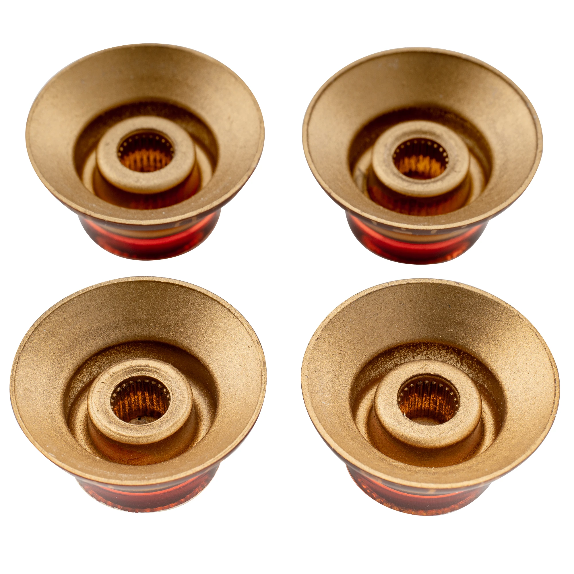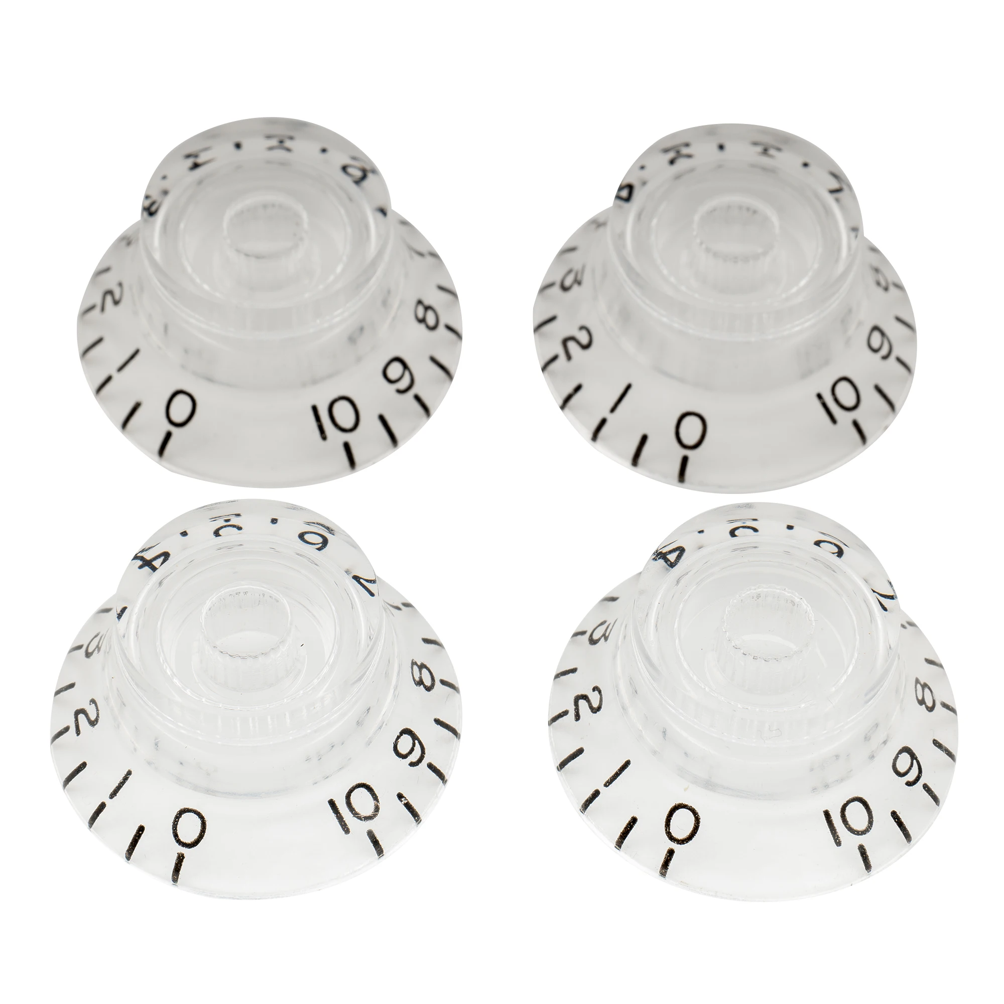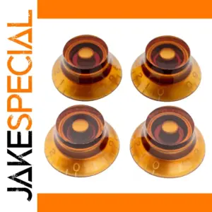 Enhance your guitar’s control layout with this set of four left-handed tone volume control knobs, specially designed for USA-made electric guitars such as Les Paul, SG, and ES-335 models. Crafted from durable acrylic, each knob features a sleek bell-shaped top hat design with a 24-spline ridged grip, a decorative circular ring engraved with numbers from 0 to 10, and a contrasting central disc available in yellow or gold. Measuring 26mm in outer diameter and 13mm in height, with a 6mm inner hole for compatibility with most American 6mm split shaft potentiometers like CTS, Fender, DiMarzio, and Bourns, these stylish knobs come in amber, black, gold, silver, transparent, or white and seamlessly fit most imperial inch-sized pots.