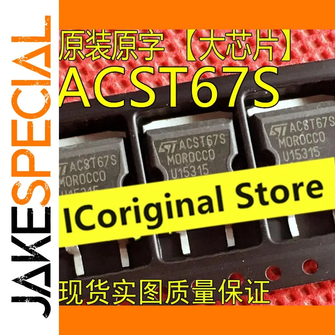 The ACST67S is an original, high-performance power switch triode designed for voltage regulation applications, featuring a 700V voltage rating and 6A current capacity. Encased in a sleek TO-263 surface-mount package with a matte black finish, this component combines modern industrial aesthetics with robust functionality. It features three metallic pins protruding from the bottom for secure PCB attachment and crisp white silkscreen markings on the top surface for easy identification. Crafted for professional electronic applications, it undergoes thorough testing to ensure top quality and reliability. Ideal for use in precision power circuits, this new, unbranded device guarantees durability and performance for your critical projects.