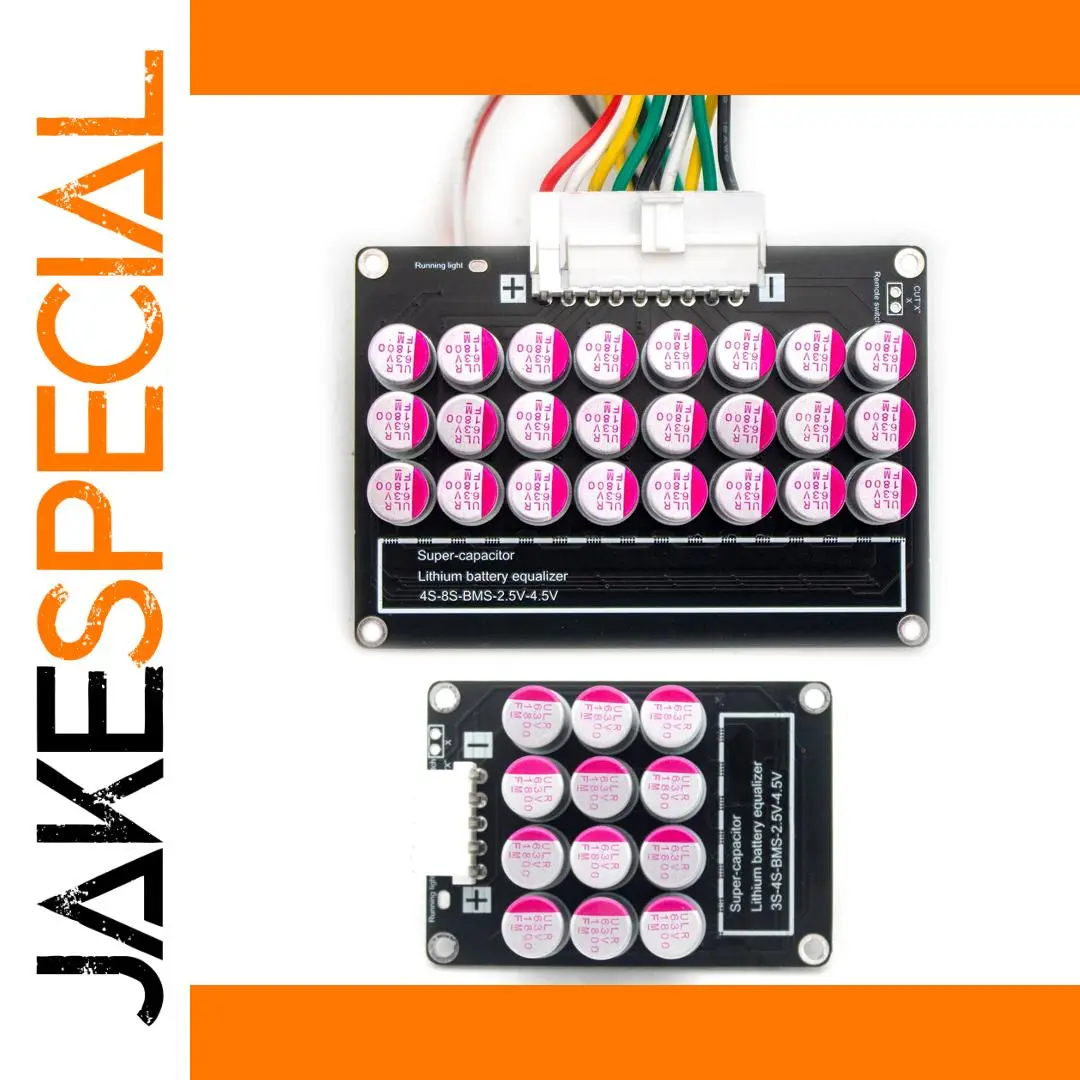 Experience seamless energy transfer with this innovative active equalizer for lithium battery packs. Designed for 4S and 8S configurations, it boasts a sleek black, matte-finish circuit board that combines high-tech functionality with modern aesthetics. The larger 8S model measures 9.8×6.5×2 cm, while the 4S version is 6.8×4.9×2 cm, making it compact yet powerful. Brightly colored wiring, including red, yellow, green, and black, emphasizes its organized, professional look. Equipped with a white multi-pin connector, a labeled switch, and LED indicators, this device offers precise control and easy monitoring. Its clean design allows it to blend seamlessly into high-end battery systems, making it perfect for enthusiasts and professionals seeking reliable, efficient energy management.