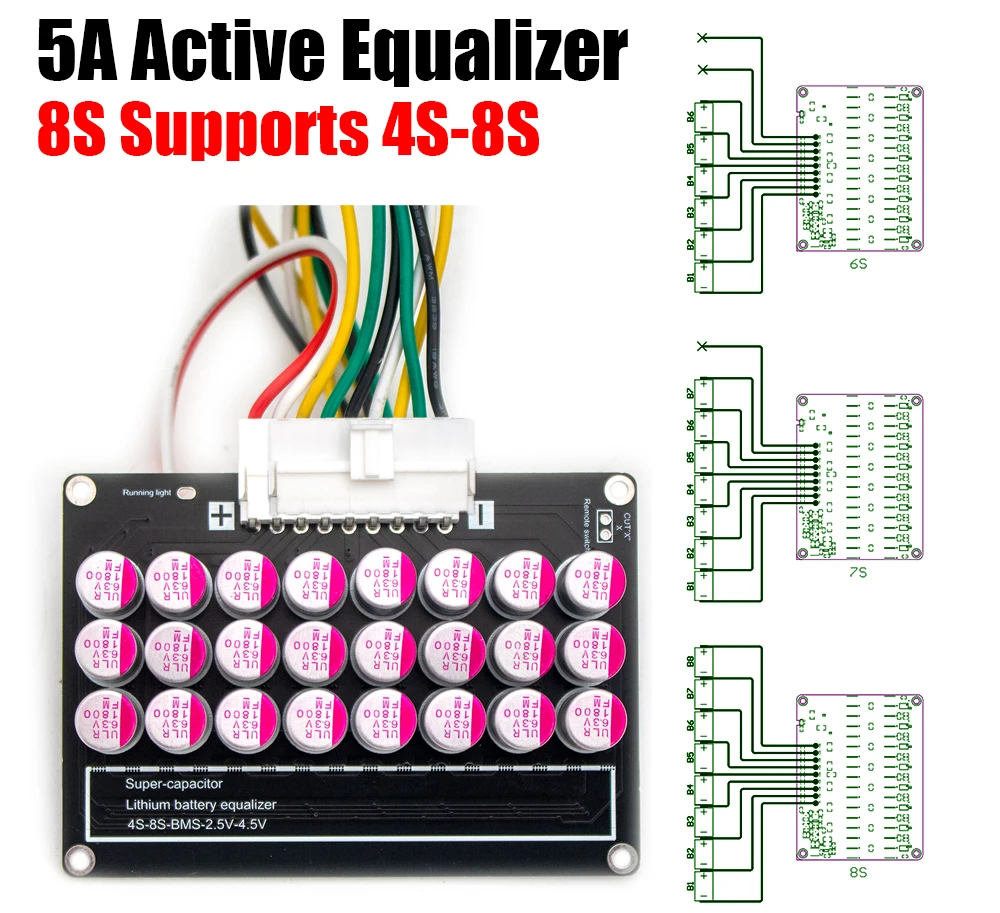 - Supports 4S (3S-4S) and 8S (4S-8S) lithium battery configurations with precise voltage range from 2.5V to 5V, compatible with various Li-ion, LiFePO4, and Li-Titanate batteries.