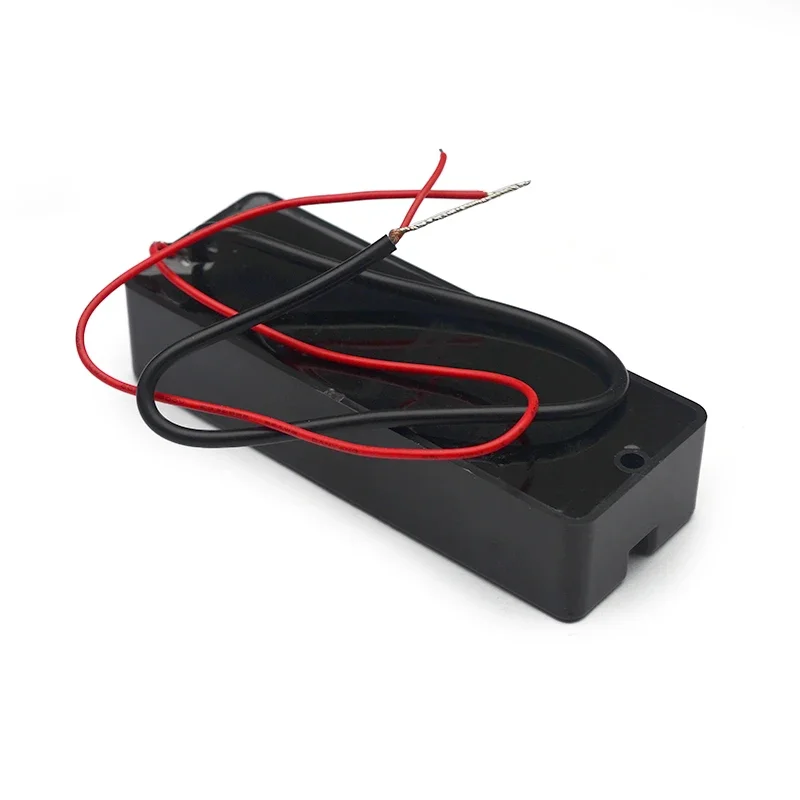Imagine now having this this active soapbar bass pickup installed on your 5-string bass guitar, elevating your sound to new levels of power and precision. Its modern double-coil humbucker design with ceramic magnets ensures a robust, aggressive tone, bursting with thunderous lows and crystal-clear highs. The glossy black finish complements any bass style, while the compact rectangular shape offers a sleek, professional appearance. Designed for effortless installation, it includes mounting screws and springs, fitting seamlessly into your instrument. With no batteries needed, it provides reliable, dynamic performance. This pickup is perfect for musicians seeking a versatile upgrade that amplifies their playing with enhanced tone, control, and impact.