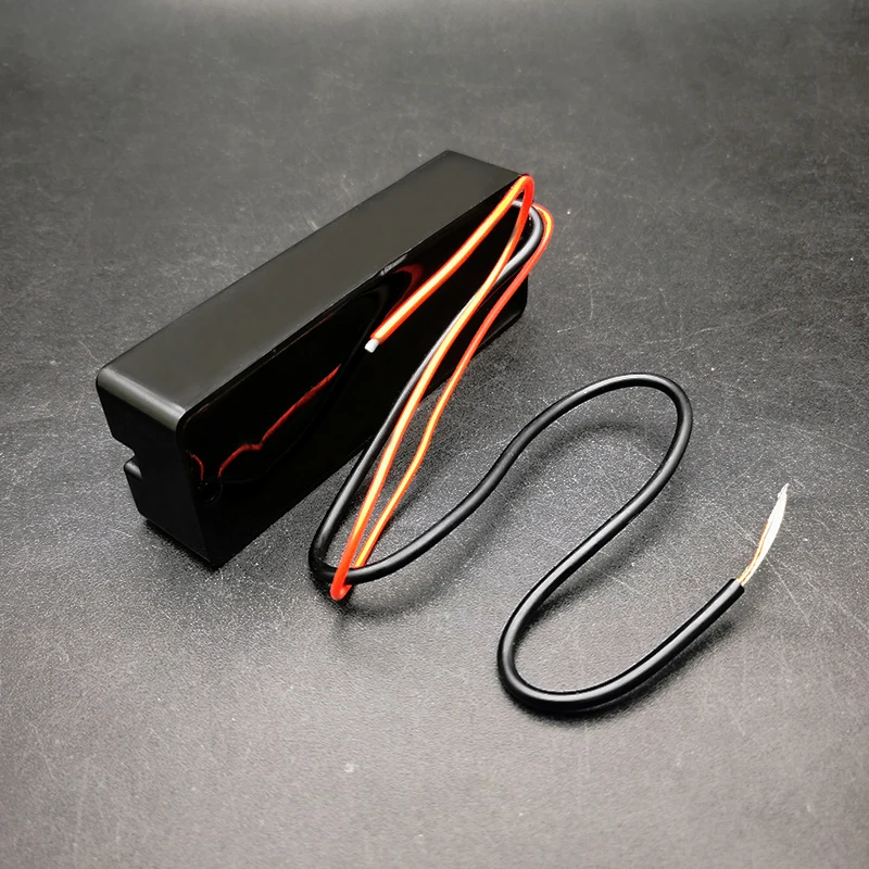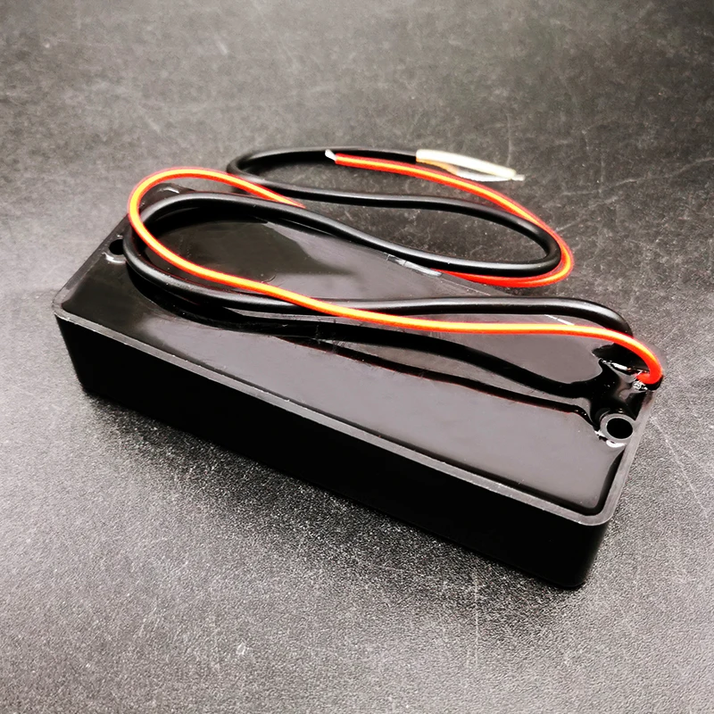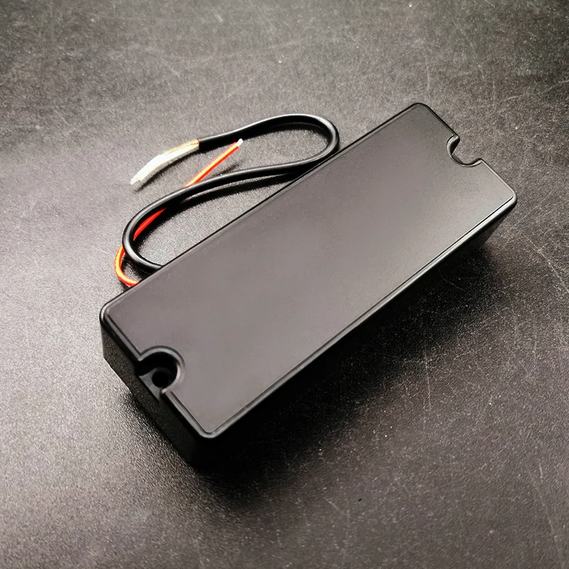 Experience the rich, powerful tone that this active soapbar bass pickup set offers for your 5-string bass guitar. Designed with sleek, black rectangular housings in a matte finish, these pickups combine modern minimalism with professional performance. The double coil humbuckers feature ceramic magnets, delivering thunderous lows and crisp highs, enhancing your playing dynamics. Easy to install with included mounting hardware—two screws and springs per pickup—these pickups are built from durable ABS plastic and metal components. Their resistance of 11-12K ohms ensures a versatile and responsive sound. With a streamlined design and high-quality materials, this set seamlessly integrates with compatible 5-string basses, providing an upgrade that transforms your instrument’s tonal palette and performance potential.