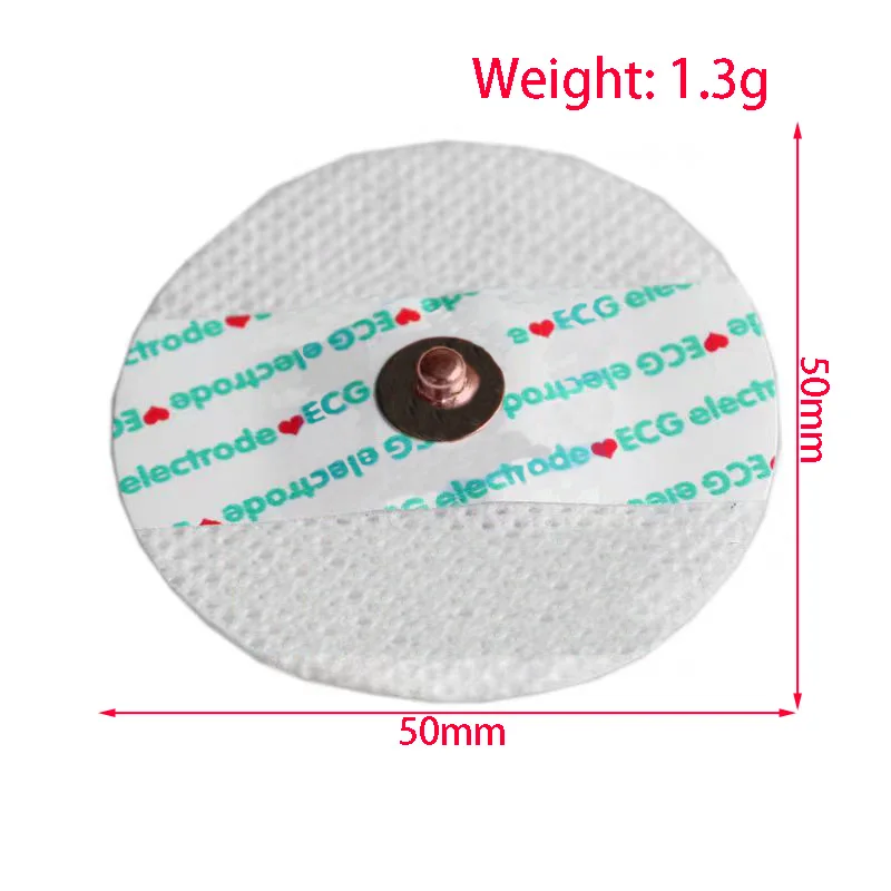 - Circular electrode pads with shiny metal snap studs enhance usability.