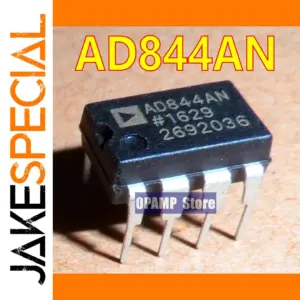 Enhance your electronic projects with this high-quality monolithic operational amplifier available in DIP and ceramic-DIP packages. Models include the brand-new AD844AN and used AD844SQ, both originating from Korea. Designed for precision and reliability, this amplifier features a compact black body with straight metallic pins for easy insertion into your circuit board. The top surface displays clear white text indicating the model number, while bold yellow and red overlays highlight the AD844AN model. Perfect for professionals and enthusiasts alike, this versatile component ensures excellent performance in various amplification applications, bringing your circuit designs to life with stability and accuracy.