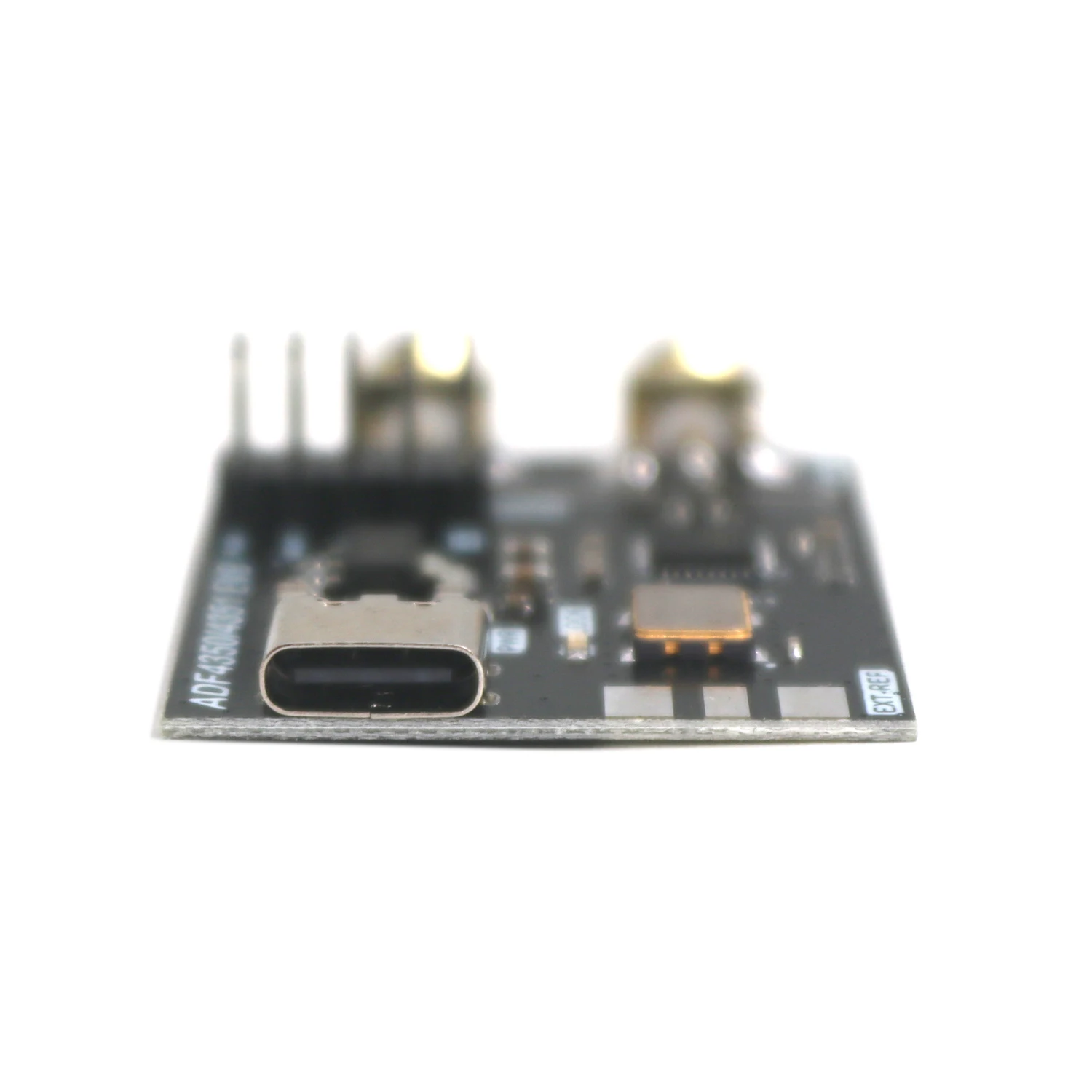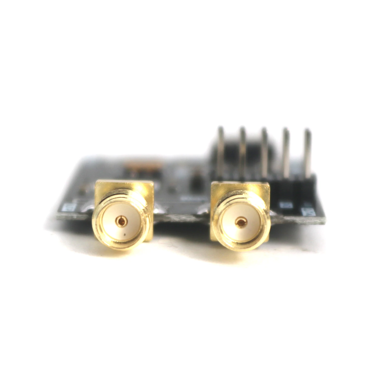 Enhance your RF testing and ham radio projects with this high-precision development board. Designed for professional enthusiasts and engineers, this board offers a sleek, functional style with a matte black surface that exudes modernity. Its orderly arrangement of surface-mount resistors, capacitors, and a central integrated circuit showcases technical craftsmanship. The prominent gold-colored SMA female connectors add a metallic contrast, highlighting the board’s capability for RF signal output. White labels and text ensure clarity and precise connection points. Whether you're working on frequency testing or signal generation, this board’s minimalist and high-contrast aesthetic reflects accuracy and efficiency, making your setup not only functional but also visually professional and appealing.